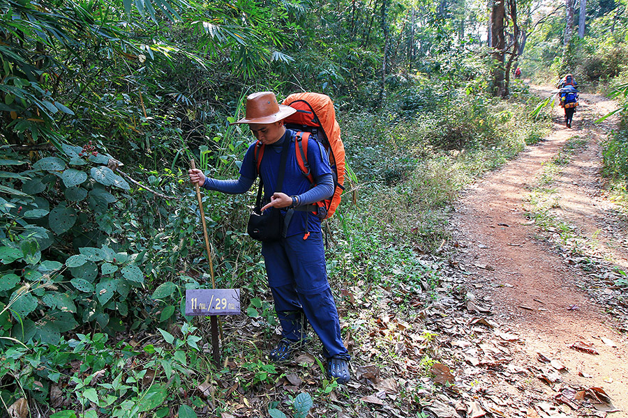 เดินมาเรื่อยๆ กลุ่มเริ่มแตก ใครเดินเร็วเดินไป เดินช้าก็รั้งท้าย ผมไม่เร่งมากอยู่กลางๆ บ่ายสองโมงครึ่งก็มาถึงตรงนี้ หลักกิโลที่ 11/29 ตัวเลขแรกคือเราเดินมาแล้ว 11 กม. ตัวเลขหลังคือระยะทางถึงยอดโมโกจู แต่วันนี้เราจะเดินกัน 16 กม. เพราะฉะนั้นเหลือ 5 กม. สุดท้ายแล้ว