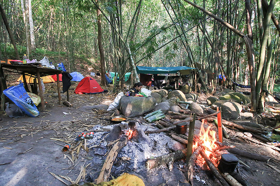 พอถึงแคมป์ก็จะเหลืออีกกิโลเดียวเท่านั้นคือยอดโมโกจู แต่ก่อนอื่นต้องจัดการเรื่องที่หลับที่นอนและที่ตั้งวง (กินข้าว) เต็นท์ก็ได้ เปลก็สบาย แล้วแต่ความชอบเลย