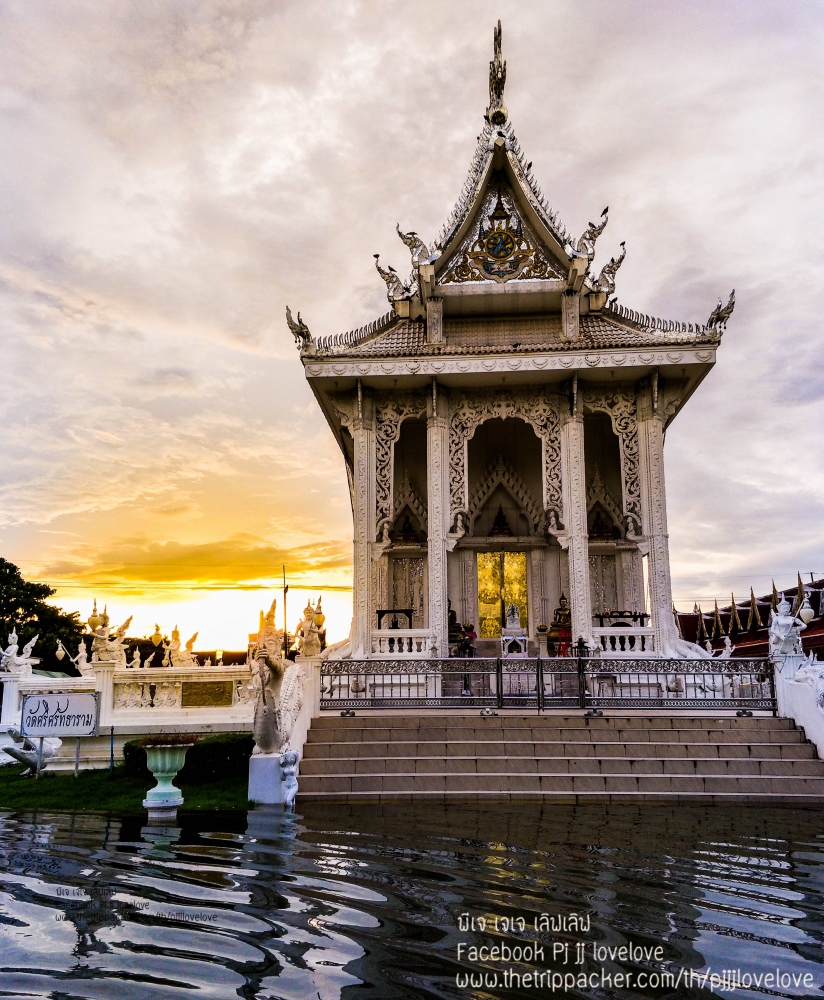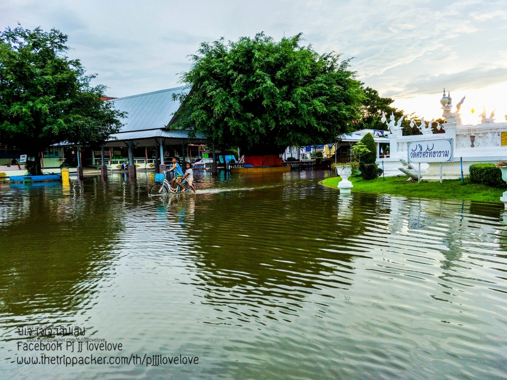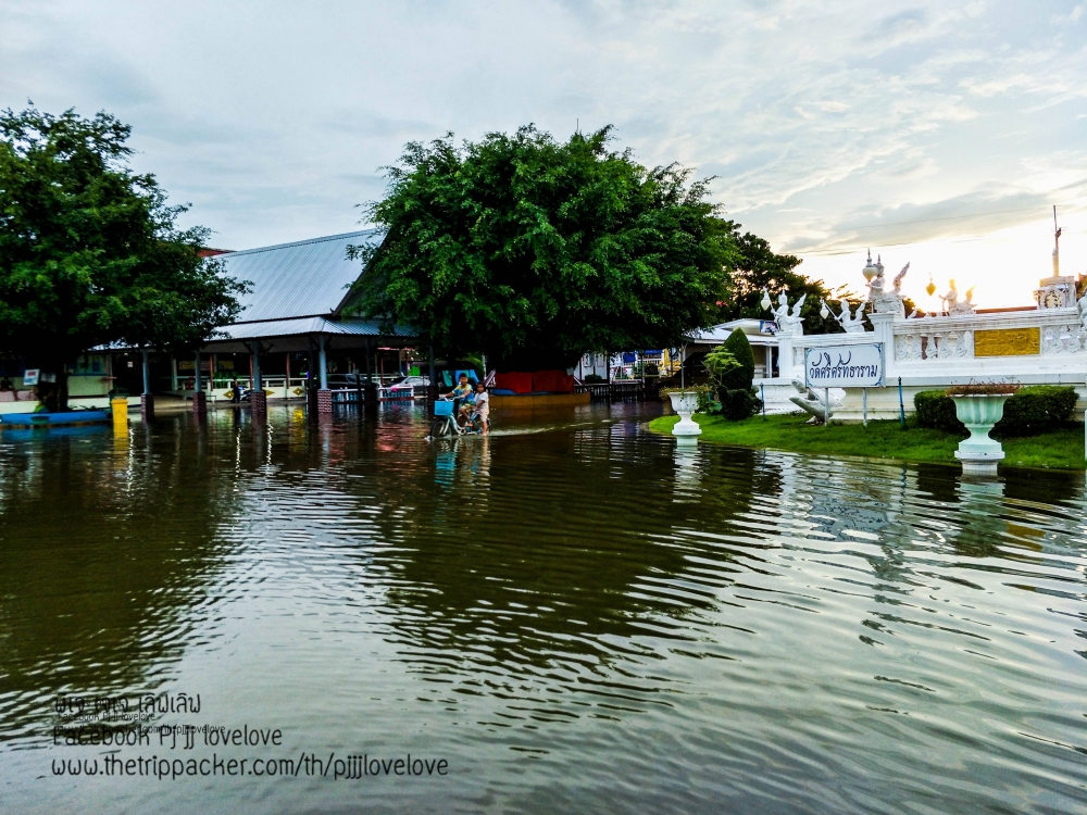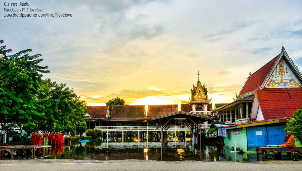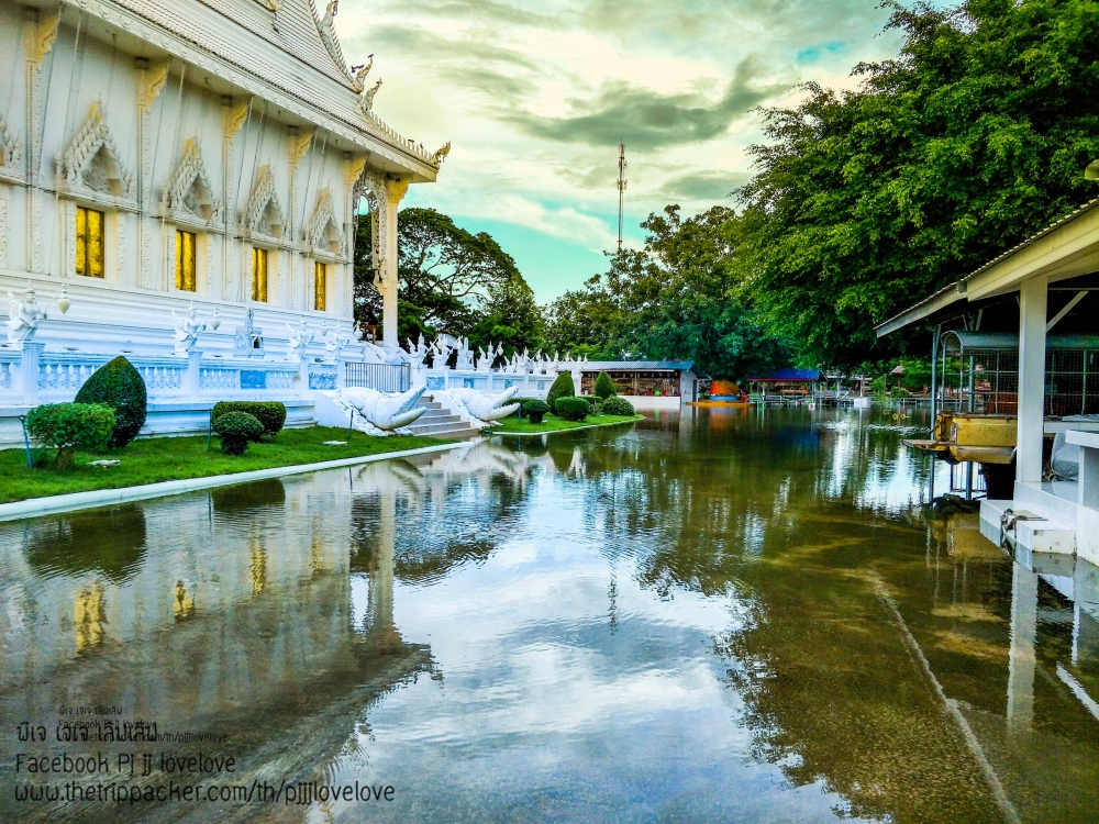 - ภาพบรรยากาศที่เห็น คือตัววัดที่ขาวสวยงาม น้ำที่ท่วมเอ่อขังอยู่รอบๆตัววัด ซึ่งวัดนั้นได้ติดอยู่กับริมแม่น้ำยม ก็ถือว่า เราได้ภาพสวยๆ แสงที่สวยงาม ยามเย็นพระอาทิตย์กำลังตก ช่วงเวลาประมาณบ่ายสาม บ่ายสี่ ไม่ผิดหวังเลย แม้น้ำท่วม ได้บรรยากาศไปอีกแบบนึง
