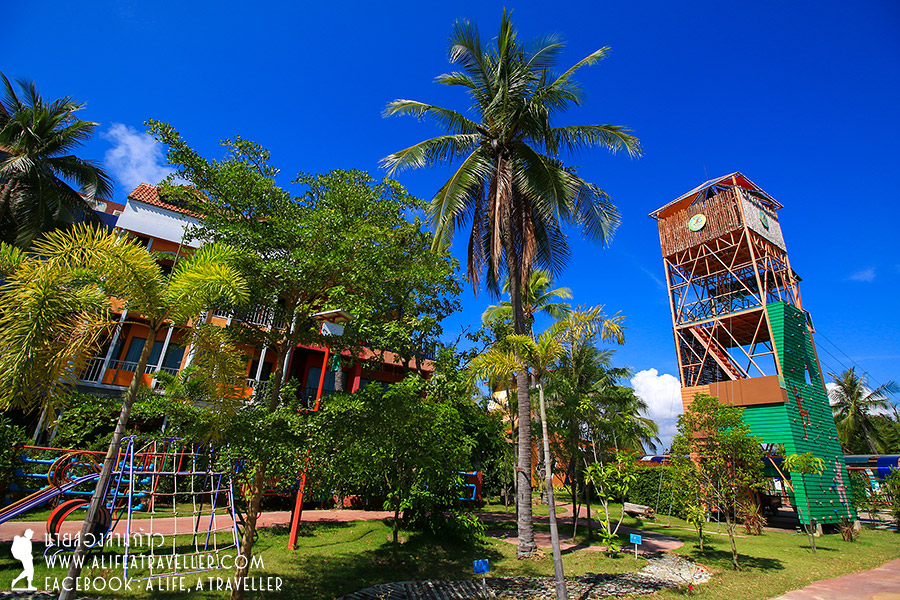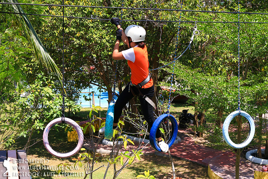 วันนี้เป็นวันเช็คเอาต์ แต่ก่อนหน้านั้นมีอะไรให้ทำอีกเพียบ เริ่มจากออกกำลังกับกิจกรรมแอดเวนเจอร์ บริเวณด้านในรีสอร์ทเป็นสถานที่เล่นฐานผจญภัย มีอุปกรณ์รักษาความปลอดภัยอย่างดี เริ่มจากการโดดหอ ปีนบันไดเชือก ผ่านฐานต่างๆ มาเรื่อย