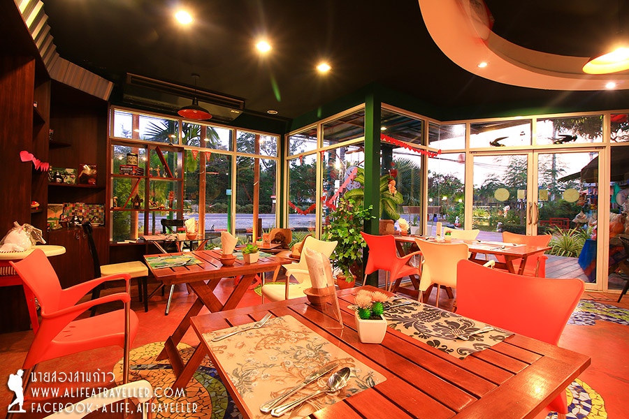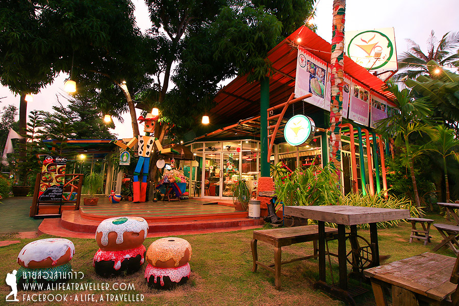 ดินเนอร์มือเย็นเราทานกันที่ร้านเก๋ๆ ด้านหน้ารีสอร์ทชื่อ วีคาเฟ่ (Ve Kafe’) มีทั้งอาหาร ขนมหวาน เครื่องดื่ม ใครไม่ได้เข้าพักก็สามารถมาใช้บริการได้นะ ถือเป็นร้านพิซซ่าเพียงแห่งเดียวในโซนบ่อนอก
