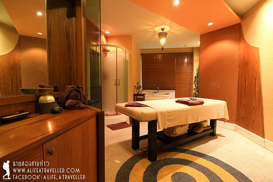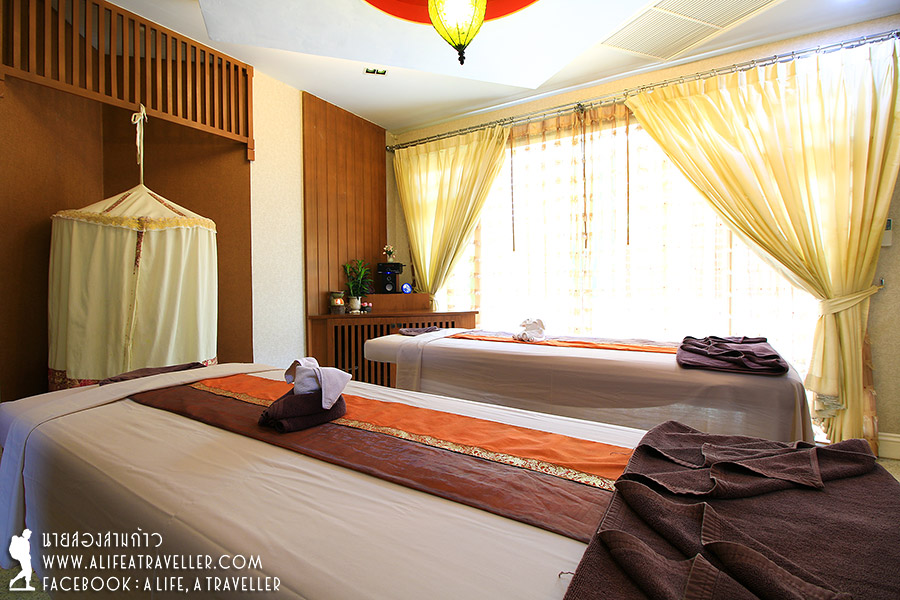 เมนูสปามีให้เลือกเพียบทั้งเพื่อความงามของสาวๆ ผ่อนคลาย ดูแลสุขภาพ อบสมุนไพร เราสองคนเลือกนวดน้ำมันอโรมา ที่นี่มีความพิเศษคือหมอจะนวดกดเส้นไล่เส้นให้เราด้วย ผสานนวดแผนไทยกับอโรมาไว้ด้วยกัน