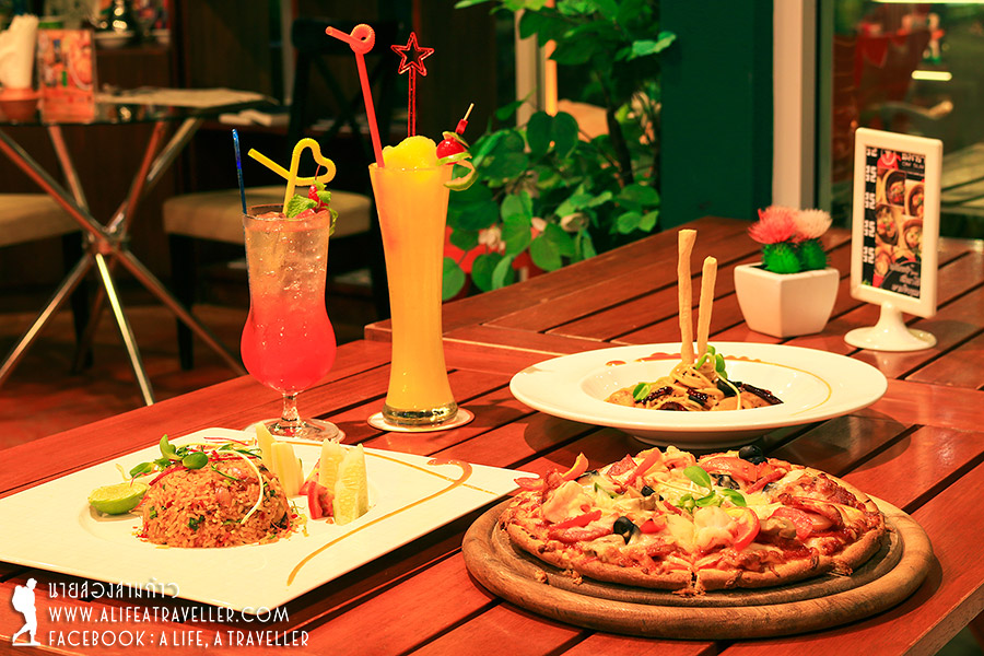 อาหารของเรามี วาฏิกา พิซซ่า สูตรเฉพาะตรงใส่เนื้อม้า เคยได้ยินว่าหลายประเทศนิยมทานแต่เพิ่งเห็นในเมืองไทย รสชาติอร่อยครับ ไม่ได้รู้สึกแตกต่างจากเนื้ออื่นๆ ต่อมาคือสปาเก็ตตี้ผัดพริกแห้งไส้กรอก และข้าวผัดต้มยำทะเล เครื่องดื่มเย็นๆ เป็นน้ำมะม่วงปั่น กับสตรอว์เบอร์รี่โซดา ไม่รู้จะบรรยายยังไง คือ อิ่ม อร่อย ฟิน