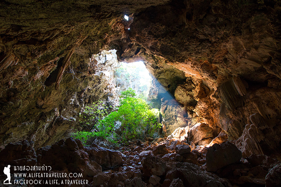 จุดหมายต่อไปของเราหลังอาหารเที่ยงคือถ้ำไทร ต้องเดินขึ้นเขา 300 เมตร จึงถึงปากถ้ำ เป็น 300 เมตร แบบอัพแอนด์อัพ หลังจากโดนตัดแรงมาหนึ่งรอบที่เขาแดง ชักจะมีคนส่งเสียงบ่นแล้ว