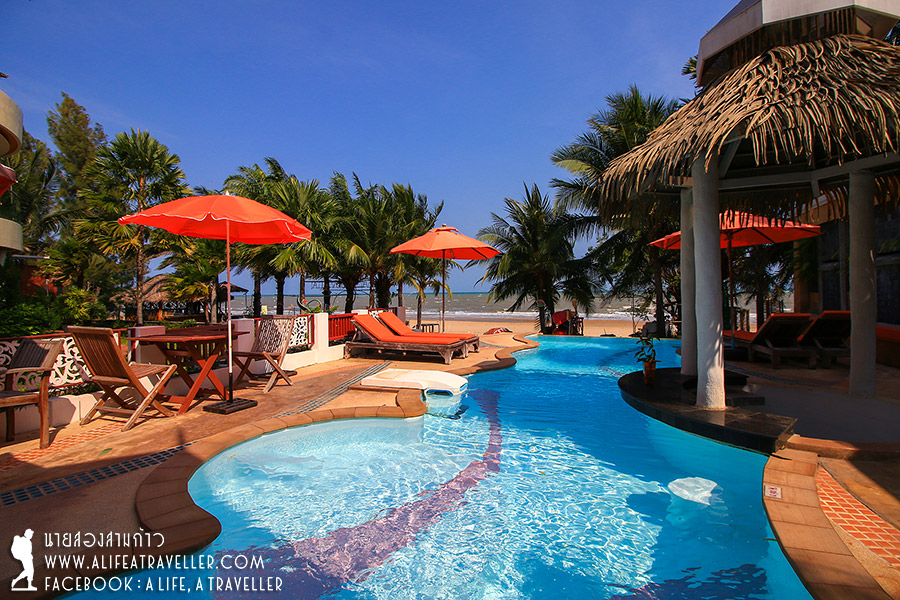 รีสอร์ทอยู่ริมชายหาดบ่อนอก มีพื้นที่ให้พักผ่อน ทำกิจกรรม สระว่ายน้ำขนาดกะทัดรัด ทว่าต้องบอกนิดหน่อยครับว่าหาดบ่อนอกไม่ใช่ทะเลประเภทสวยใส ไปใส่บิกินี่เกลือกลิ้งอาบแดด เพราะเป็นชายหาดบ้านๆ ทรายสีค่อนข้างคล้ำ เสน่ห์ของมันคือเราสามารถพบเห็นวิถีชีวิตผู้คนที่ยังดำรงอยู่กันแบบเรียบง่าย หาปลาหาหอย ไม่เหมือนกับชายหาดท่องเที่ยวโดยปกติ