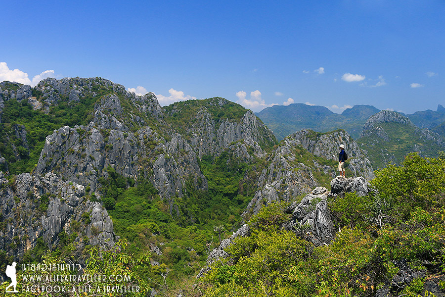 หากหันกลับมาทางฝั่งภูเขา จะเห็นเขาหินปูนลูกน้อยลูกใหญ่เรียงรายสวยงามมากมาย
