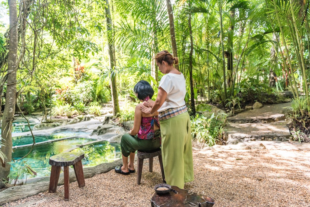 ความลับที่ผมอยากบอกคือราคาของโปรแกรมสปาเต็มวัน (8:30-15:30 น.) ของที่นี่น่าสนใจมาก (อยากใช้คำว่าถูกมากด้วยซ้ำ) แพ็คเกจจะประกอบไปด้วยผลไม้ต้อนรับ, สครับผิว, แช่น้ำธรรมชาติร้อน-เย็น + โยคะไทยในน้ำ + นวดกดจุดบ่าไหล่, อาหารเที่ยง, สอนทำงานฝีมือ, นวดไทย, รถรับ-ส่ง ในราคาแค่ 2,800 บาท (ถ้าเป็นภูเก็ตบ้านผมอาจจะได้แค่ค่ารถ taxi ไป-กลับเท่านั้น เพราะระยะทางจากที่นี่ไป-กลับตัวเมืองกระบี่ก็ร่วม 100 กม. กันเลยทีเดียว)