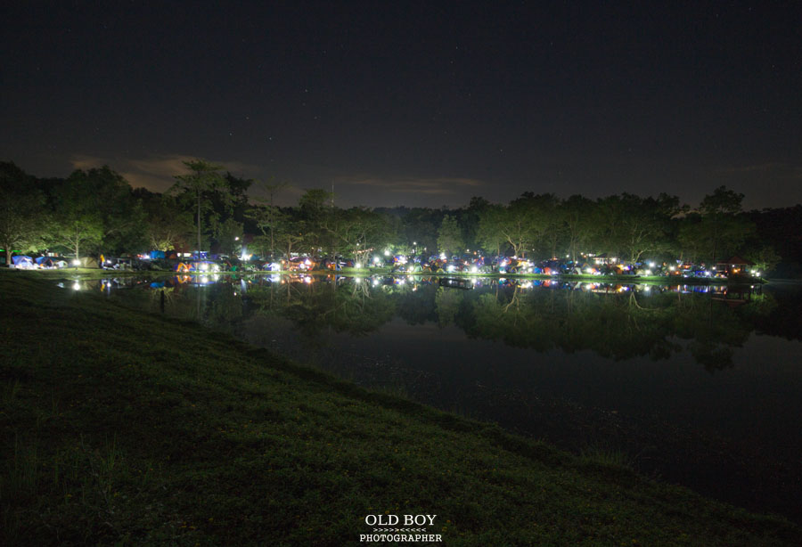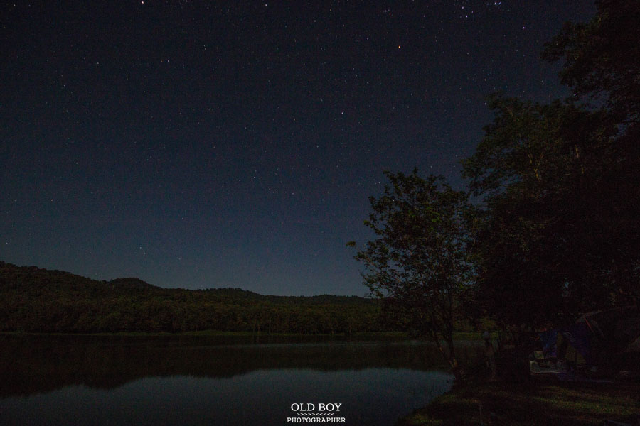 ตอนดึกๆ ประมาณห้าทุ่ม เจ้าหน้าที่ปิดไฟรายทางทั้งหมด จึงพอมองเห็นวิวท้องฟ้าและดาวอยู่บ้างประปราย ผมถ่ายแค่ไม่กี่ภาพก็หลบเข้าเต๊นท์นอน