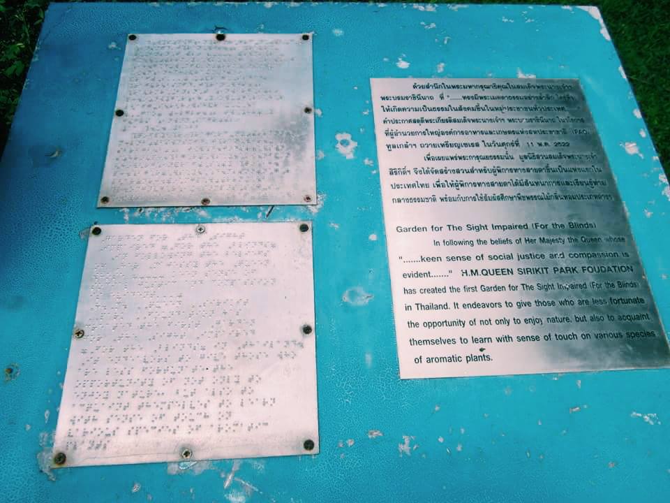 ไฮไลท์อีกอย่างของที่นี่อีกอย่างนึงที่เราชอบคือ ผู้พิการทางสายตาก็ชมสวนและสัมผัสถึงจินตนาการได้ว่าสวนนั้นงดงามเพียงใด เป็นพระมหากรรุณาธิคุณ