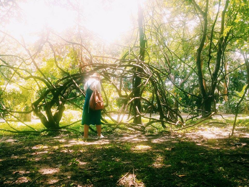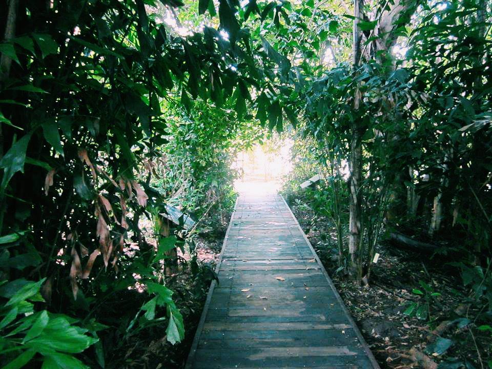 มันน่าตื่นตาตื่นใจ ไม่คิดว่าจะมีอุโมงค์ต้นไม้กลางเมือง พยายามมองออกไปข้างนอก ไม่เห็นอะไรเลย เป็นกิ่งไม้ ต้นไม้ป่าเต็มไปหมด เหมือนเราเดินอยู่ในป่าจริงๆ ได้ยินแต่เสียงน้ำไหล เป็นป่าชื้นเลย