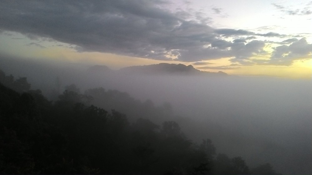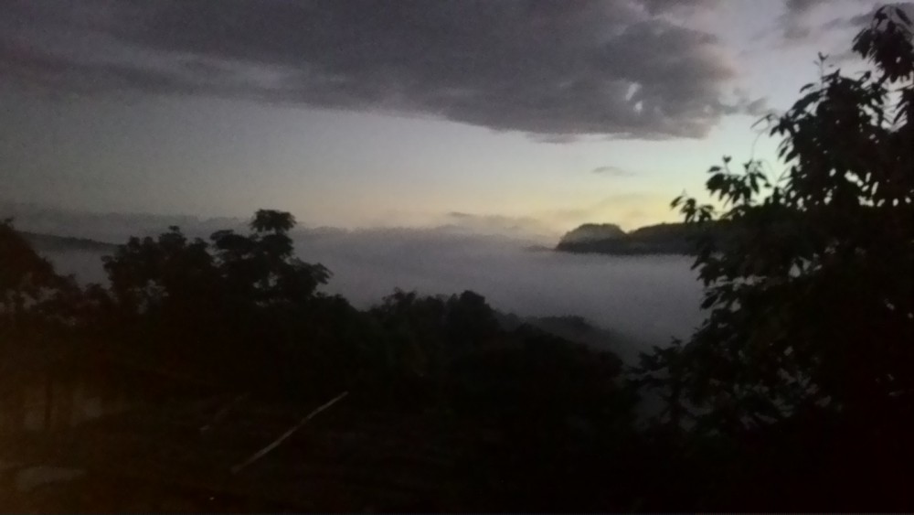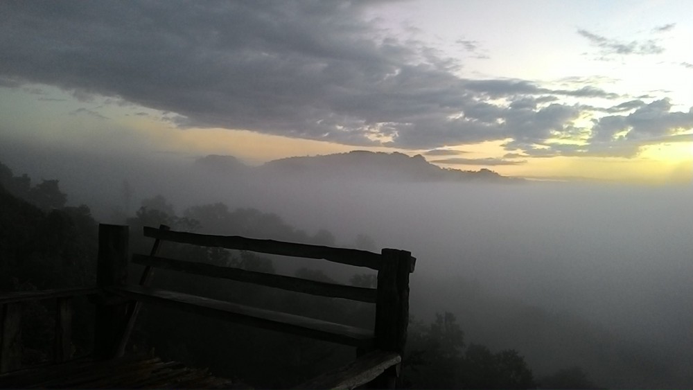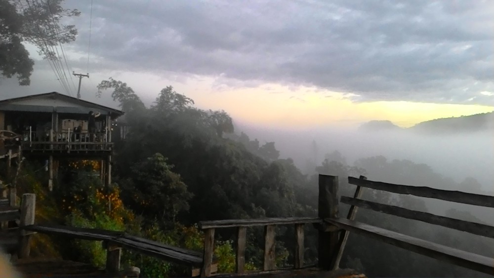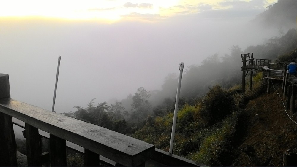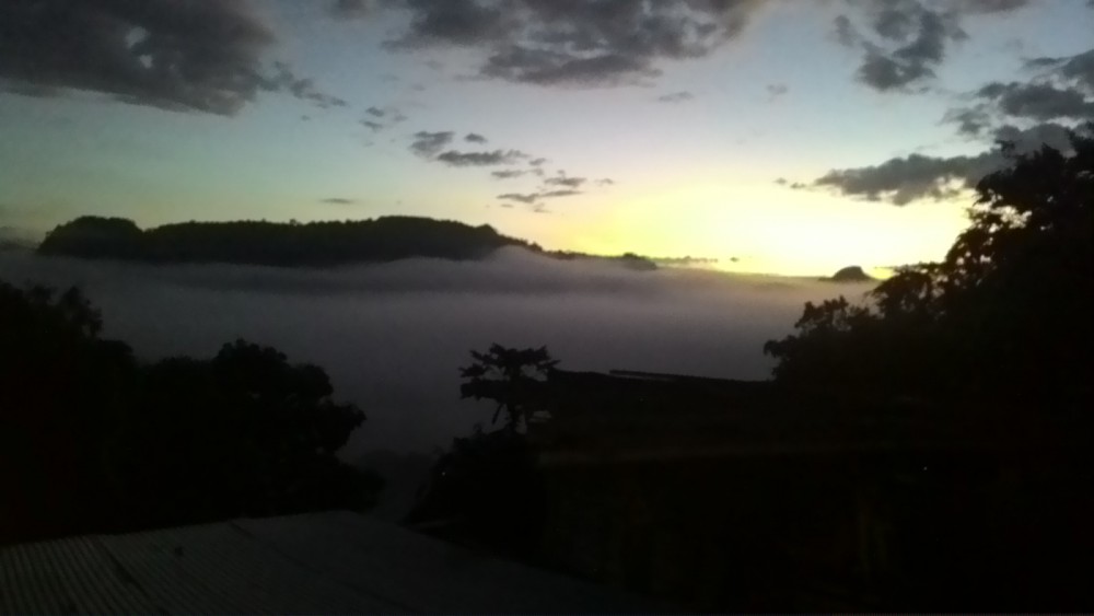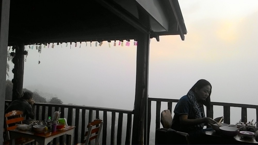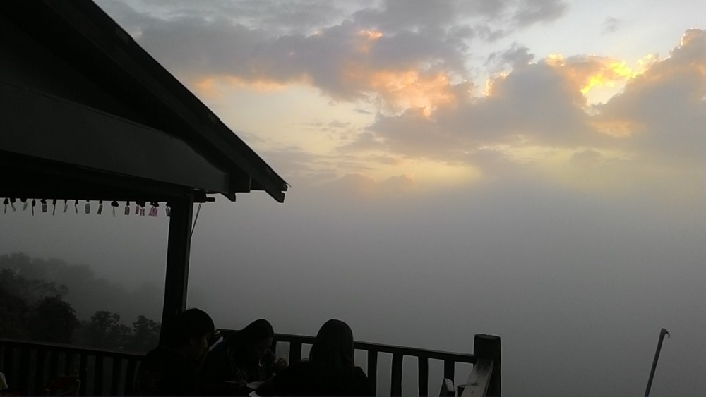 นั่งไปนั่งมาก็ 5.00 ผมก็เลยมองออกไปที่หน้าต่าง สิ่งที่เห็นมันทำให้เราหายเหนื่อยขึ้นมาทันที อากาศเย็นๆ ที่พัดเข้ามาทางหน้าต่าง กลิ่นของธรรมชาติ หมอกบางๆ ที่พัดผ่านใบหน้า มันทำให้ผมมีความสุขได้โดยที่ไม่ต้องทำอะไรแค่นั้งมองเราก็ยิ้มได้