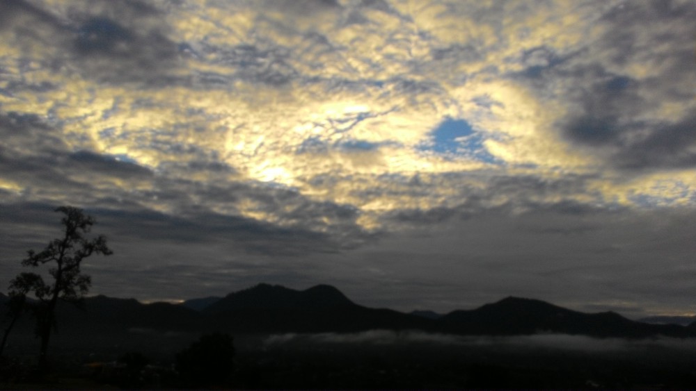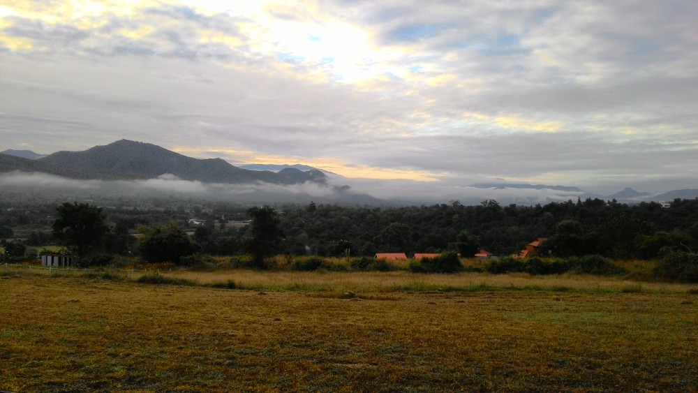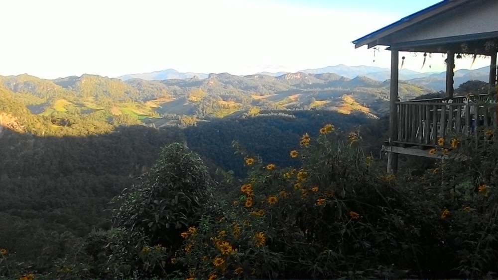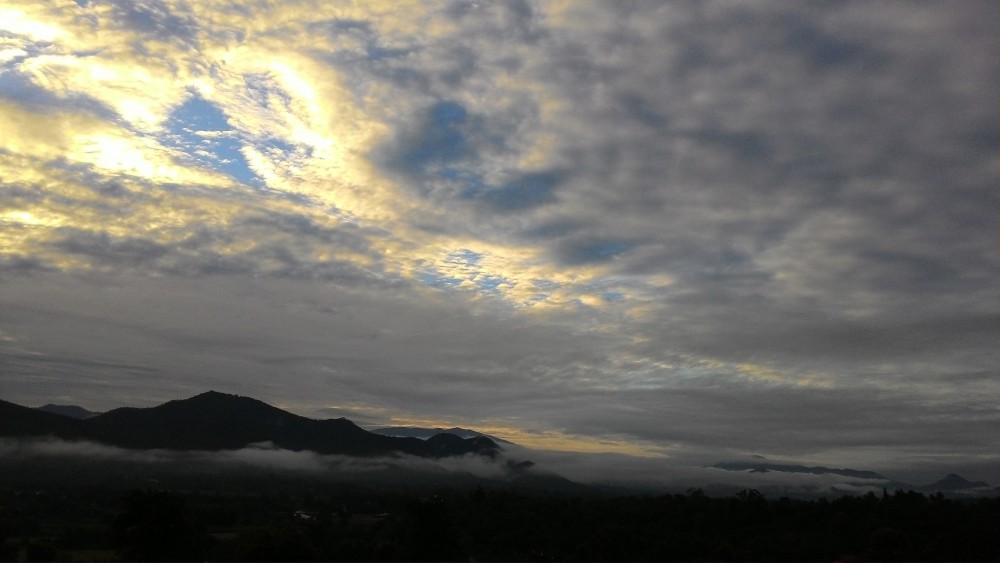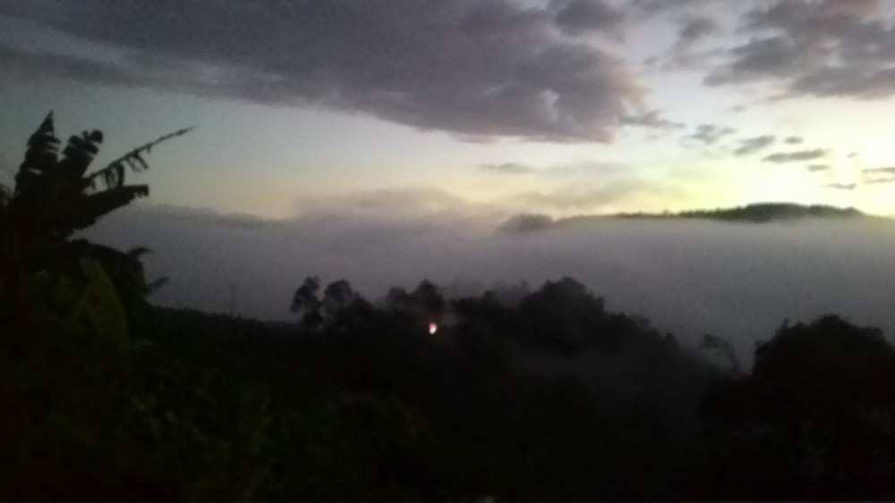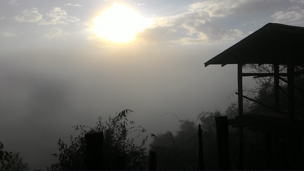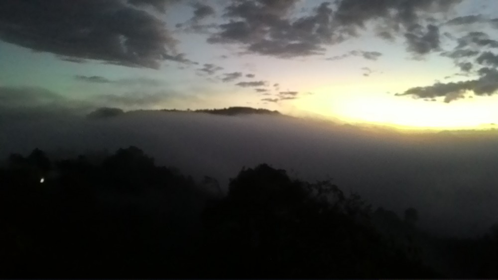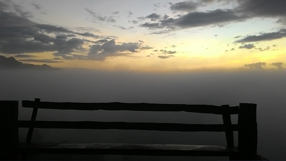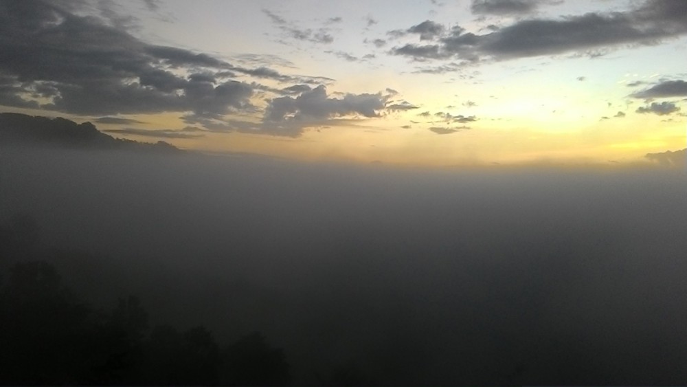 นั่งไปนั่งมาก็ 5.00 ผมก็เลยมองออกไปที่หน้าต่าง สิ่งที่เห็นมันทำให้เราหายเหนื่อยขึ้นมาทันที อากาศเย็นๆ ที่พัดเข้ามาทางหน้าต่าง กลิ่นของธรรมชาติ หมอกบางๆ ที่พัดผ่านใบหน้า มันทำให้ผมมีความสุขได้โดยที่ไม่ต้องทำอะไรแค่นั้งมองเราก็ยิ้มได้