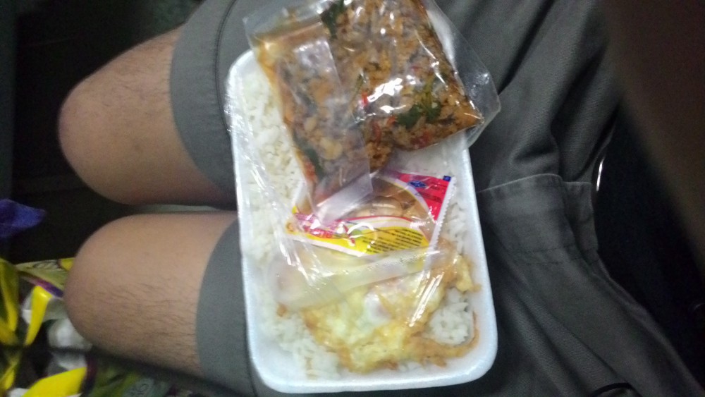 ผมก็นั่งมองนองหน้าต่างไปเลื่อยๆ ซักประมาณ 07.00 ก็มีคนมาขายของละผมเลยจัดข้าวผัดใข่เจียวไป 35 บาท