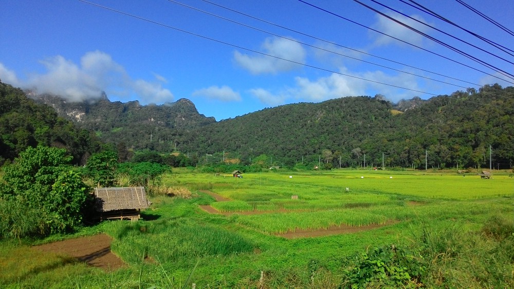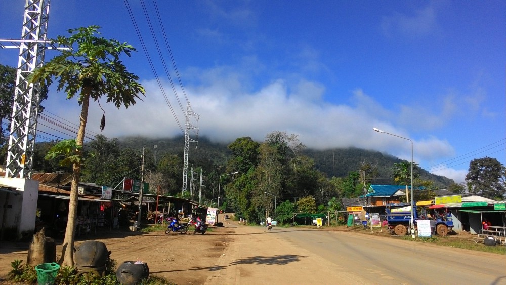 เอาละครับตอนนี้เรามาถึงปางมะผ้าแล้ว เห็นภูเข้าข้างหน้านั้นใหมครับ เราต้องข้ามไปครับ พอถึงปางมะผ้าต้องไปต่อีกประมาณ 15 กิโล ลุยๆๆ