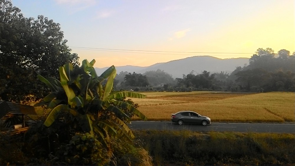 ถ่ายรูปวิวบบ้านก่อนแล้วก็ขับมอไซคู่ใจไปร้านก๋วยเตี๋ยว