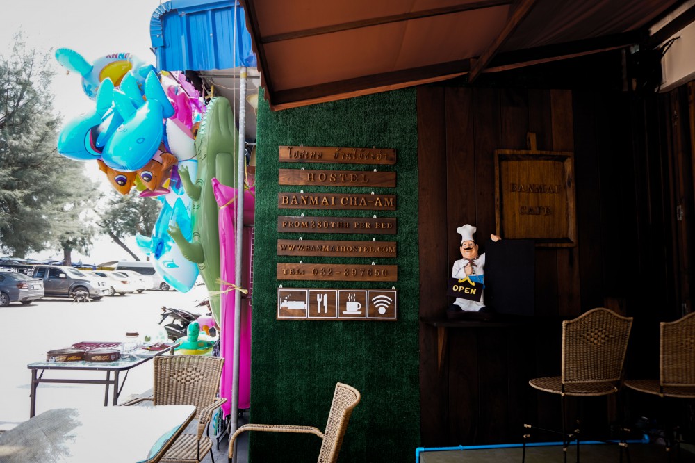 หลังจากนั้นเราก็นั่งวินฯ ไปที่พัก Hostel Banmai Cha-Am ซึ่งอยู่ติดหาดเลย