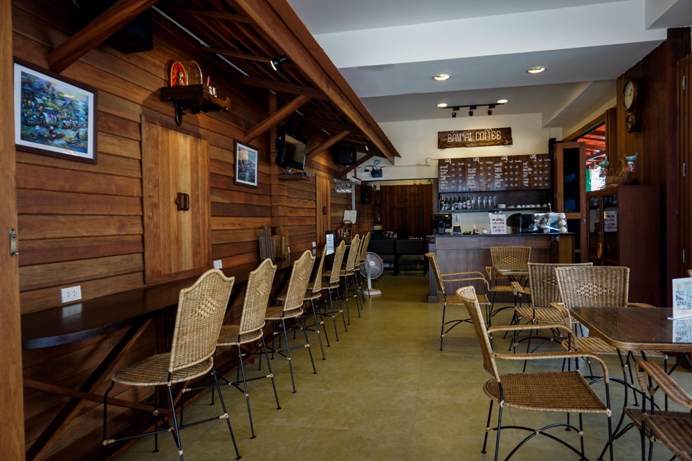 - ด้านล่างที่พักเป็นร้านกาแฟและบาร์ -
