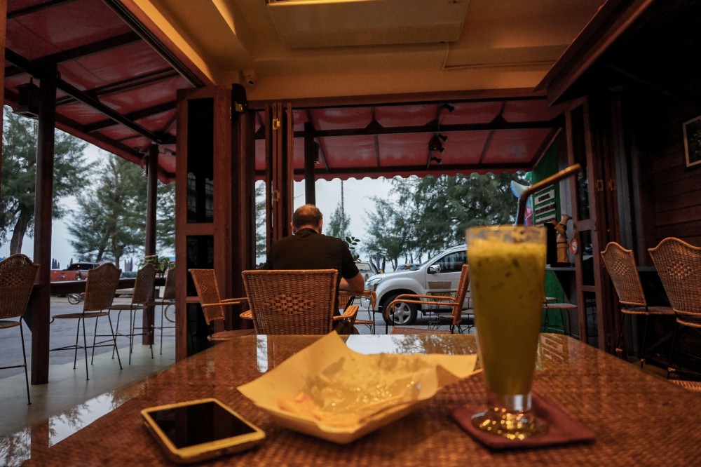 - ไม่ใช่แก้วเปล่านะ 555 หน้าที่พักริมหาดมีร้านโจ๊กเปิดด้วย -