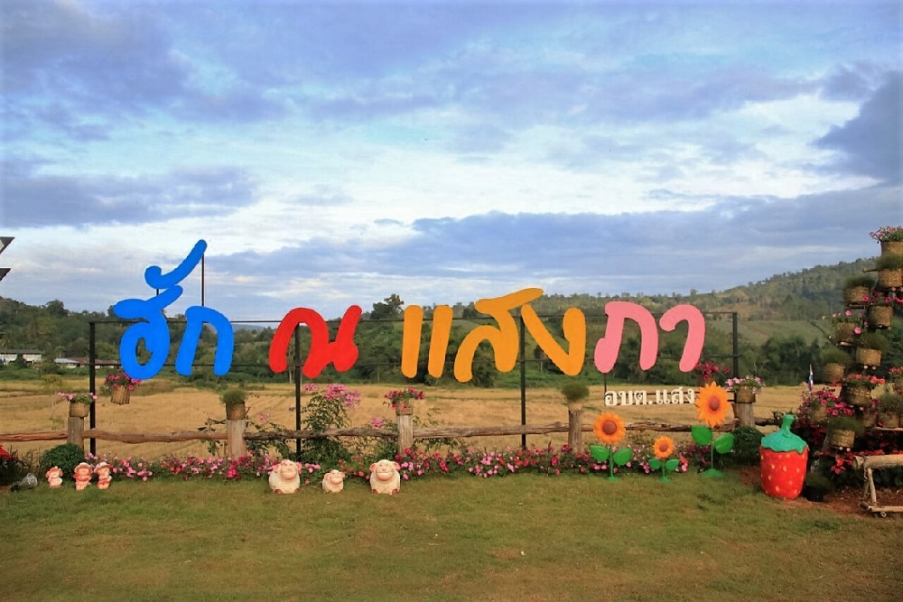 มาถึงนาแห้วแล้ว ไม่ลืมเช็คอินตรงป้ายยินดีต้อนรับที่เชิญชวนแขกมาเยี่ยมเยือนจริงๆ