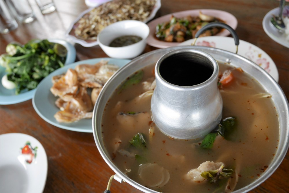 ออกจากกรุงเทพตั้งแต่ 6 โมงเช้า เกือบบ่ายโมงก็ถึงป้ายบอกทางไปอำเภอนาแห้ว เย้...เย้..>>> ท้องเริ่มส่งเสียงร้องลั่นแข่งกัน สัญญาณน้ำย่อยตะโกนบอกหิวแล้ว>>>>แวะเลย ร้าน "อะไรก็หมู" ไม่แน่ใจว่าเขียนแบบนี้หรือป่าว ชื่อเท่ห์ไหมหละ?? 5555 ขอบอกส้มตำอร่อยที่สุดในสามโลก (พี่เขาว่างั้น) อร่อยทุกอย่างจริงๆ ที่สำคัญมีกล้วยทับ เอ๊ะ!!!หรือกล้วยทุบ ไม่แน่ใจเพราะพี่เจ้าของร้านเล่นเอาสากมาทุบเพื่อเพิ่มอรรถรส 555 ขอบอกอร่อยที่สุดอีกแล้ว ร้านตั้งอยู่ตรงมุมถนนขวามือเลยป้ายอำเภอนาแห้ว (ขออภัยไม่แม่นระยะทาง เพราะเริ่มตาลาย) 5555 กินเสร็จต้องกลับรถเลี้ยวขวาไปเส้นทางตามป้ายไปอำเภอนาแห้วประมาณ 30 กิโลเมตร>>>