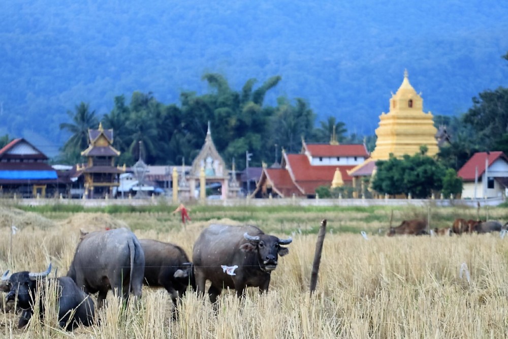 ทักทายฝูงน้องควายเรียบร้อยแล้ว เดอะแก๊งฯ จึงขอเข้าวัดเพราะอุโบสถและวิหารจำลองที่ตั้งเด่นสง่าเหลืองทองอร่ามนั้น ยั่วตายั่วใจเหลือเกิน