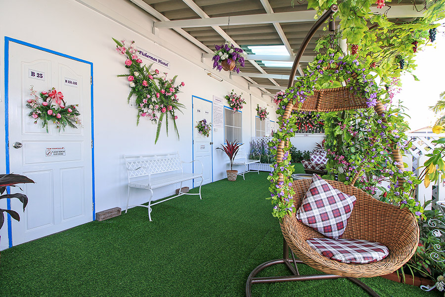 ที่พักของคนรักความสงบ ห่างจากแหลมผักเบี้ยแค่ 6 กม. Fisherman's Villa Seaview รีสอร์ทเล็กๆ ตกแต่งน่ารักหวานแหวว มีให้เลือกแบบบ้านเดี่ยวกลางสวนหย่อมสวย และแบบห้องพักบนอาคารพานิชย์ดัดแปลง ราคาเริ่มต้นราวสองพันกว่าๆ
