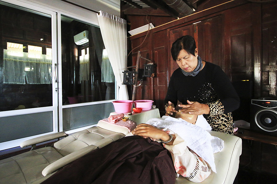 นอกจากขายของโอท็อป กังหันทองยังมีบริการนวดไทย นวดหน้า และขัดผิวโดยใช้ผลิตภัณฑ์จากดอกเกลือ ราคาน่าคบหาแต่ละคอร์ส 300 บาท เป็นการทำสปาแบบไทยๆ เก๋ไก๋สไตล์ไทยๆ ครับ