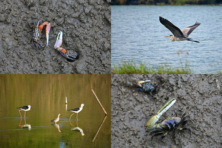 แหลมผักเบี้ย เป็นแหล่งหากินของนกทั้งประจำถิ่นและนกอพยพ รวมแล้วพบนกกว่า 240 ชนิด หน้าหนาวจะมีนกให้ชมหลากหลายมาก ลองปั่นจักรยานไปส่องดูสิครับว่าเราเจอนกอะไรบ้าง และภายในป่าชายเลน ลองสนใจมองตามพื้นสักหน่อยจะสังเกตเห็นสิ่งมีชีวิตเล็กๆ หากินอวดก้ามสีสันสวยงามเต็มไปหมด กิจกรรมดูปูดูนกนี่แหละช่วยสอนให้เรารู้จักคุณค่าของธรรมชาติดีนัก