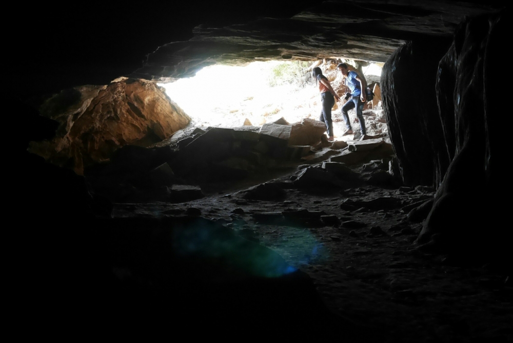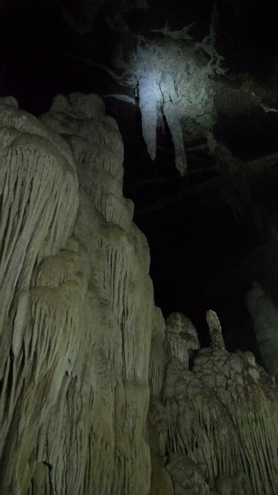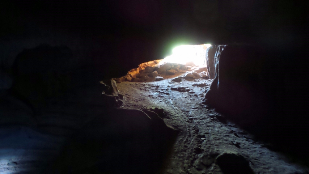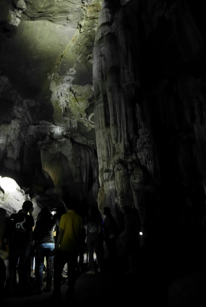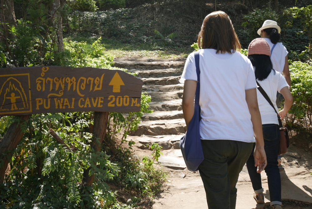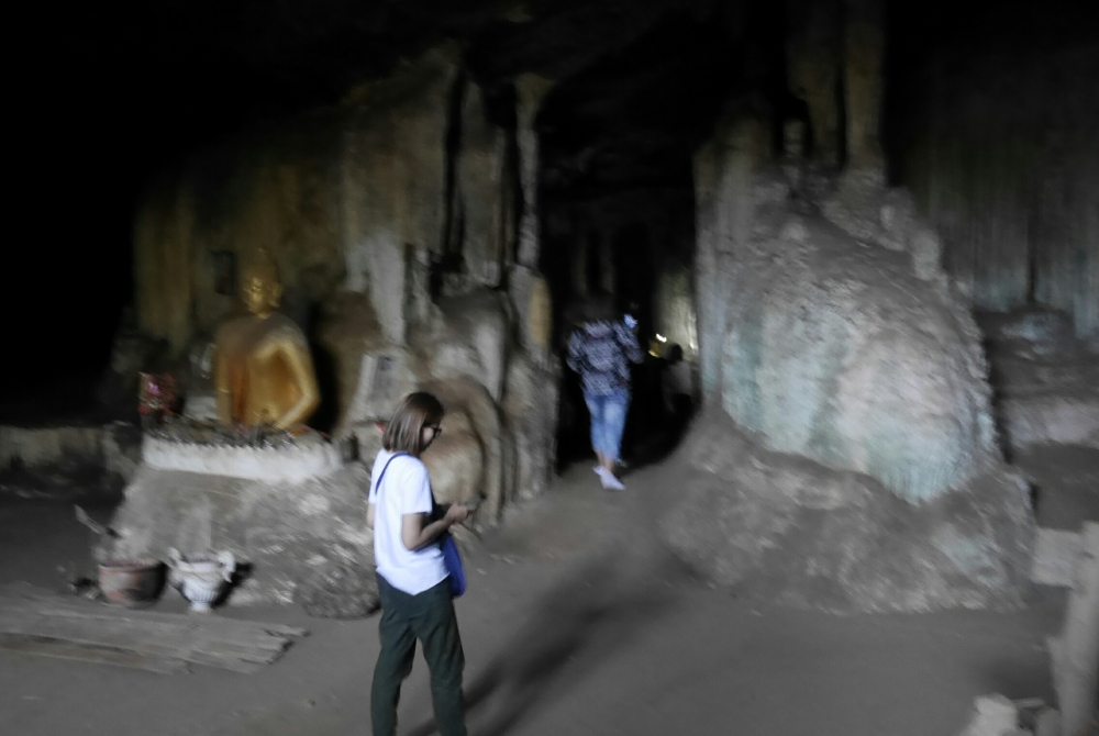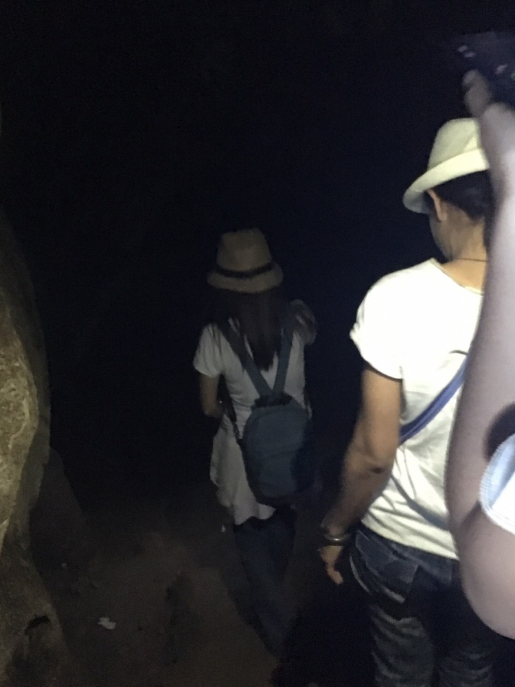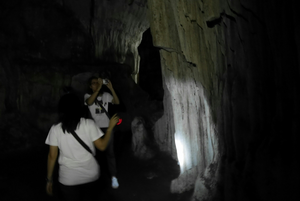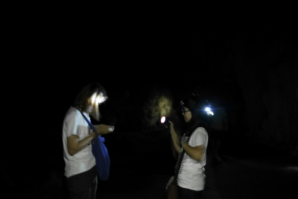 เดินไปเดินมาเห็นป้ายทางออก เพราะสาดไฟไปเจอพอดี เดินต่อสิค่ะ แต่... เอ๊ะ+++ อ้าว!!!! ทางไหนว้า ได้ยินเจ้าหน้าที่บอกแว่วๆ ว่าทางออกจะเห็นแสงสว่างลอดมาให้เห็นแล้วเดินออกไปทางนั้น หันรอบ 360 องศา ไหงไม่เห็นแสงทางสว่างเลย เอาไงหละที่นี้ น่านไง!!! มีกลุ่มนักท่องเที่ยวมาอีกแล้ว