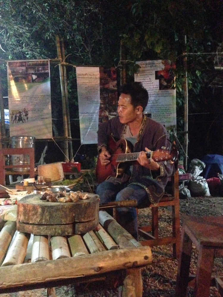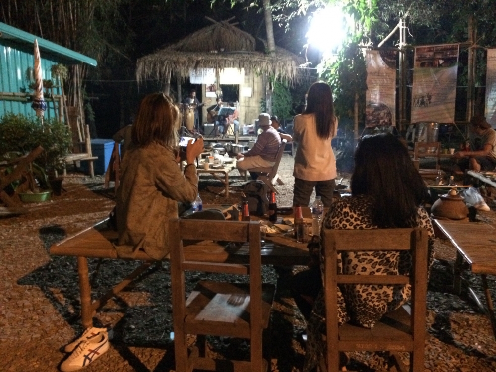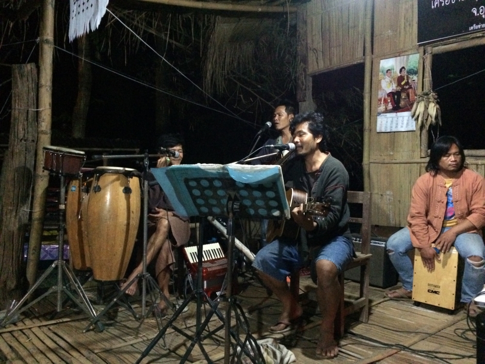 พี่เมธนักร้องประจำวง และสมาชิกขับกล่อมร้องเพลงให้บรรดาผู้หลักผู้ใหญ่ที่เตรียมงานวันพรุ่งนี้ พร้อมแขกที่มาเยือนอย่างเดอะแก๊งฯ ฟังกันเคลิ้ม