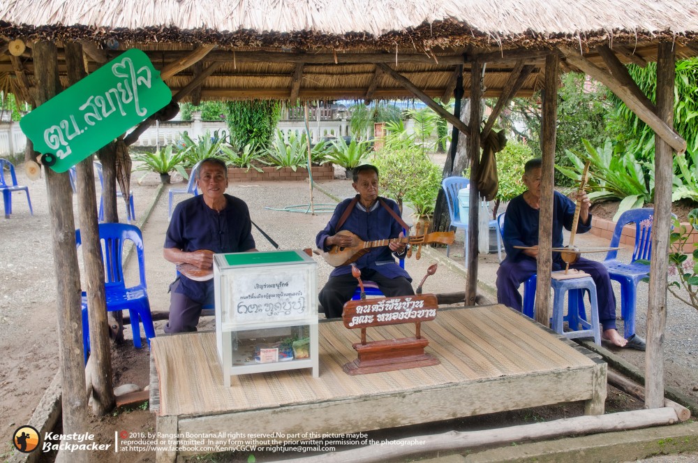 เราออกเดินทางกันต่อมายังที่อ.ท่าวังผา เพื่อแวะวัดหนองบัว ซึ่งเป็นวัดโบราณอีกแห่งหนึ่งของชาวไทลื้อ มีจิตรกรรมฝาผนังในวัดเป็นฝีมือช่างคนเดียวกับที่วาดภาพปู่ม่านย่าม่านของวัดภูมินทร์ บริเวณหน้าโบสถ์มีบรรดาพ่ออุ้ยของหมู่่บ้านบรรเลงเพลงพื้นเมืองต้อนรับนักท่องเที่ยวอยู่ทุกวัน มีตู้บริจาคเขียนว่า "เชิญร่วมอนุรักษ์ดนตรีพื้นเมืองผู้สงอายุบ้านหนองบัว"หลังโบสถ์เป็นที่ตั้งของศูนย์บริการวัฒนธรรมสายใยชุมชนก็เห็นแม่อุ้ยกำลังทำงานประดิษฐ์ ผมว่าดีน่ะครับที่นอกจากจะช่วยอนุรักษ์วัฒนธรรมพื้นบ้านแล้ว ยังช่วยให้บรรดาพ่ออุ้ยแม่อุ้ยมีกิจกรรมอะไรทำ