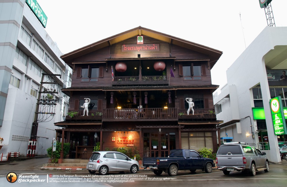 ขณะที่นั่งกินข้าวกันอยู่เราคุยกันถึงหมายกำหนดการของวันนี้ คือเราจะขึ้นดอยเสมอดาวเพื่อไปชมหมอก แต่ฝนดันตกตลอดทางตั้งแต่เข้าเมืองน่านมา ก็เลยมุ่งหน้ามายังในเมือง เพื่อที่จะเที่ยววัดกันต่อ และไปขึ้นสวนยาหลวงกันตอนเที่ยงๆ ทำไมจึงรีบขึ้นสวนยาหลวงนั่นก็เพราะได้รับข่าวร้ายจาก คุณกฤษณ์ กลุ่มท่องเที่ยวชุมชนเชิงอนุรักษ์ ไกด์ประจำหมู้บ้านสันเจริญว่าฝนตกตลอดทั้งคืนทำให้ถนนพัง ถ้าจะขึ้นไป รถสามารถไปส่งได้แค่กลางทางที่เหลือต้องแบกสัมภาระเดินขึ้นไปยังโฮมสเตย์และยังต้องเดินขึ้นดอยอีก 4-5 กิโลอีกเพื่อให้ทันเก็บแสงเย็นและไหนจะต้องเดินขึ้นไปเก็บแสงเช้ากับระยะทางเหมือนเดิมอีกมันจะทันหรือเปล่านี่สิ เราตกลงกันว่างั้นค่อยรอดูสถานการณ์และสภาพอากาศไปเรื่อยๆก่อน