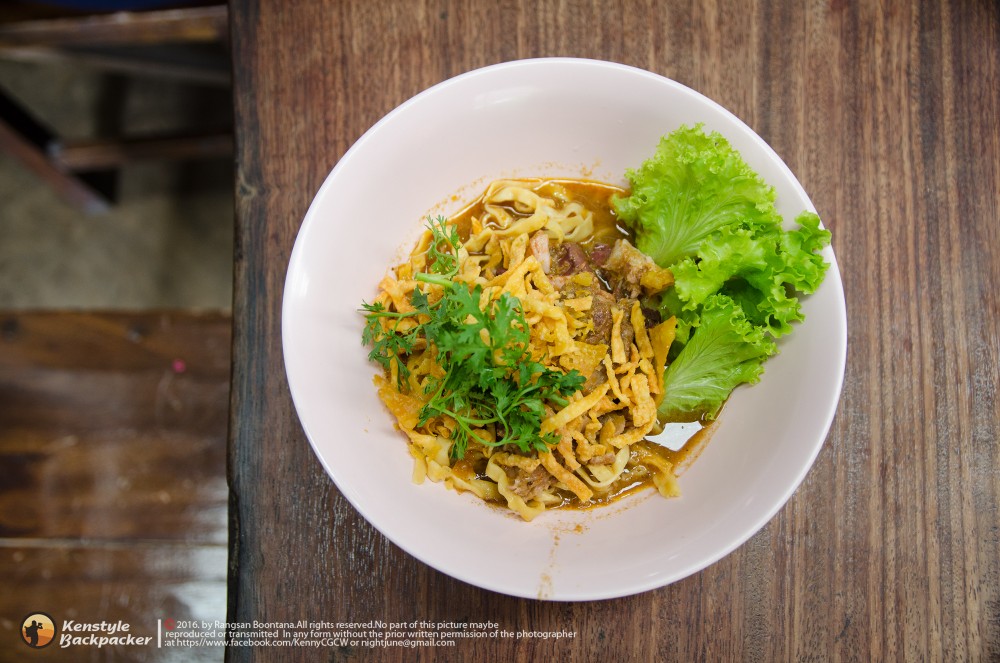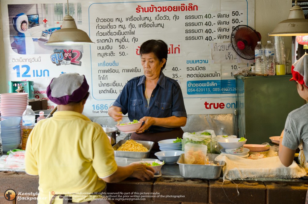 เข้ามาถึงเมืองแพร่ตอนเที่ยงกว่าอยากกินข้าวซอยกันเลย search หาร้านข้าวซอยร้านดังในเมืองแพร่สักหน่อยไปเจอร้านข้าวซอยเจ๊เล็กเด้งขึ้นมา เลยจับ GPS วิ่งเข้าในเมือง ร้านข้าวซอยเจ๊เล็กเป็นร้านไม่เล็กเลยทีเดียวมีที่นั่งหลายโต๊อยู่ เมนูก็จะมีข้าวซอย หมู เนื้อ ไก่ หมูสะเต๊ะ และขนมจีบ