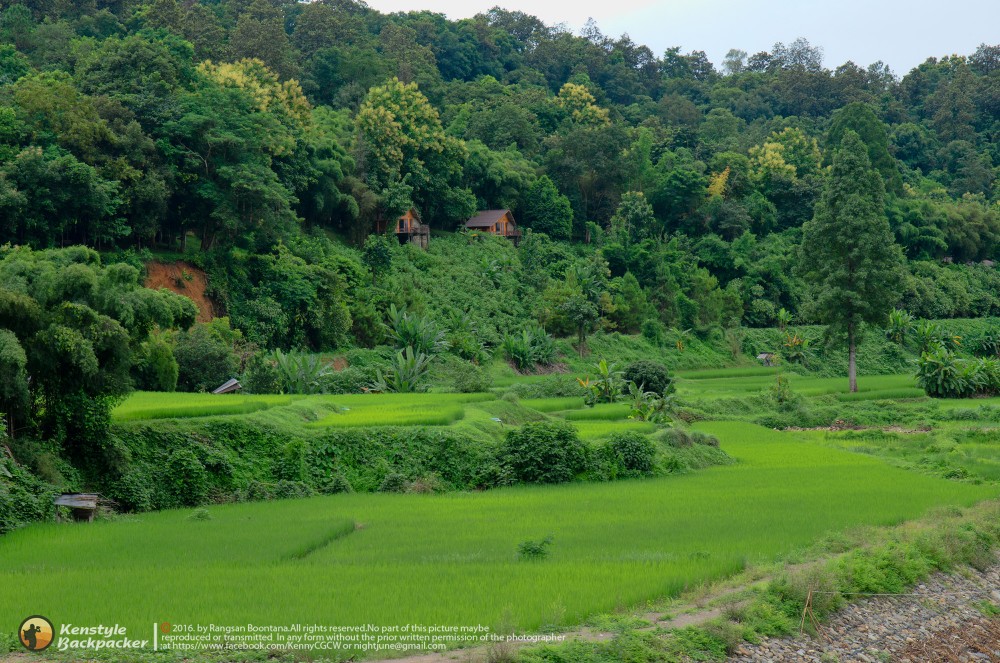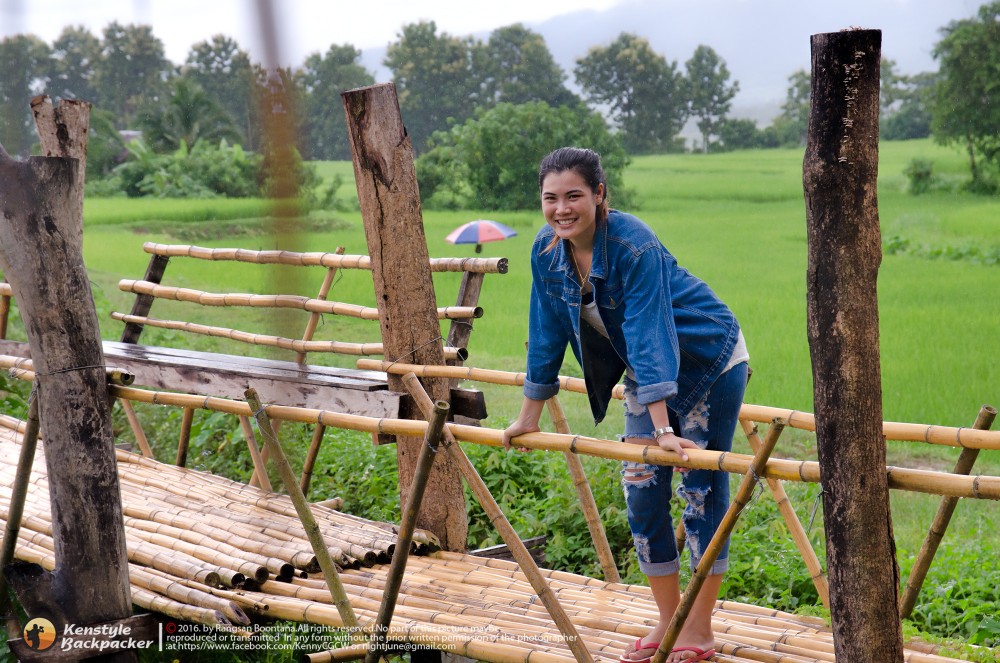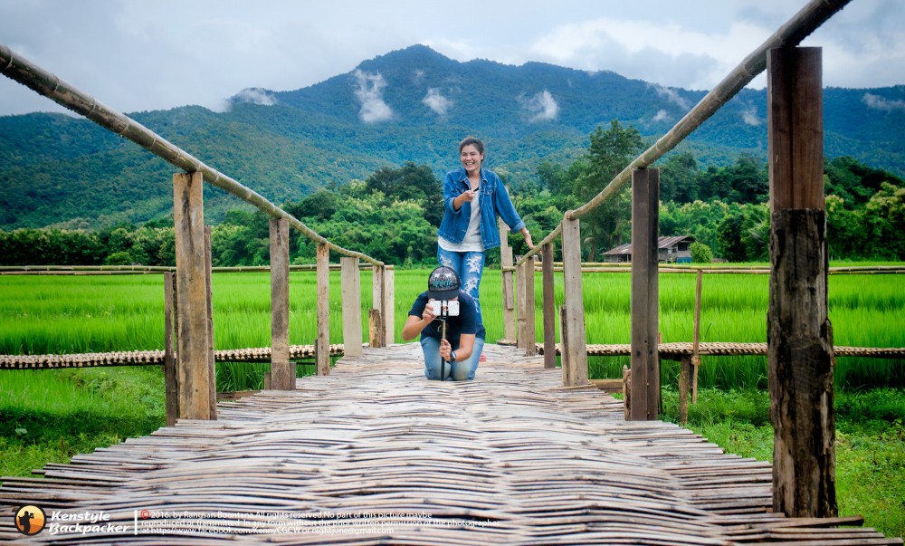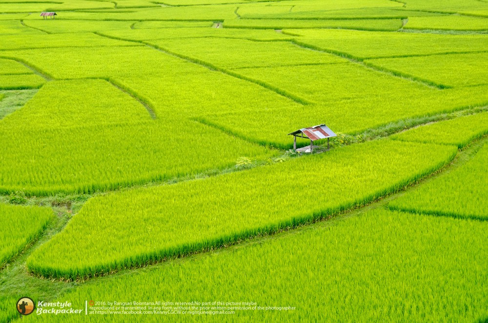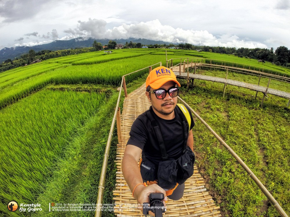 หลังจากเก็บภาพมุมสูงพอสมควร ทีนี้ก็ลงไปสัมผัสแปลงนาข้าวอย่างใกล้ชิดกันบ้าง ไม่ต้องห่วงทริปนี้น้องๆนางแบบรอเข้ากล้องกันอยู่แล้ว เลยกดชัตเตอร์กันมันทีเดียว ข้อแนะนำเสื้อผ้าควรใส่สีสันฉูดฉาดเข้าไว้ไม่ต้องกลัวควายจะไล่ขวิด เพราะที่นี่ไม่มีควาย ยิ่งหากใส่สีแดง จะเป็นโทนสีตรงกันข้ามกับสีเขียวของทุ่งนา มันจะตัดกันสวยงามทีเดียว ดังภาพ