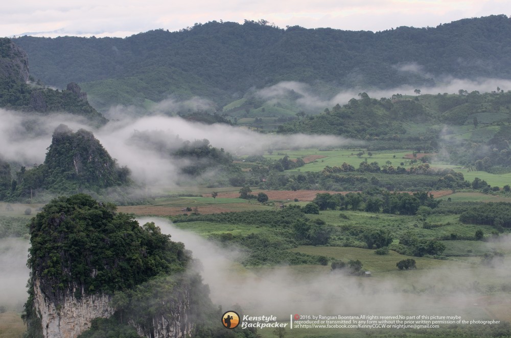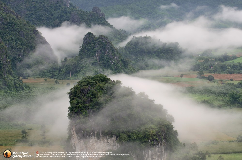 ภาพเขาหินปูนเบื้องหน้าที่มีหมอกไหลผ่านมาแล้วก็ผ่านไป ให้ความรู้สึกสงบอย่างประหลาดจนบางครั้งแค่นั่งมองมันก็สุขใจแล้ว