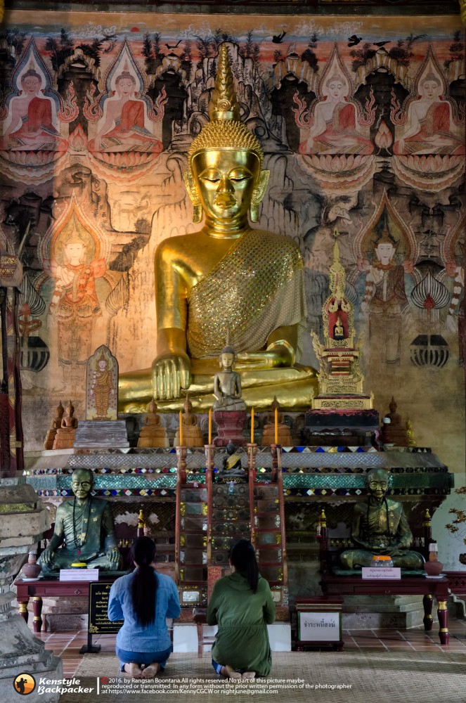ฝนหยุดตกแล้ว พวกเราเดินหามุมถ่ายภาพในวัดไปเรื่อยๆ ทางวัดจัดมุมเก๋ๆไว้ให้ถ่ายภาพมากมาย บริเวณวัดสะอาดอ้านมาก ภายในพระอุโบสถ ศิลปกรรมฝาผนัง อีกทั้งองค์พระประธานสวยงามยิ่งนัก ขากลับเราชักภาพร่วมกับนักดนตรีรุ่นดึกคณะหนองบัวบานกันเป็นที่ระลึก ส่วนประวัติวัดหาอ่านได้ตาม link นี้ครับ ประวัติวัดหนองบัว