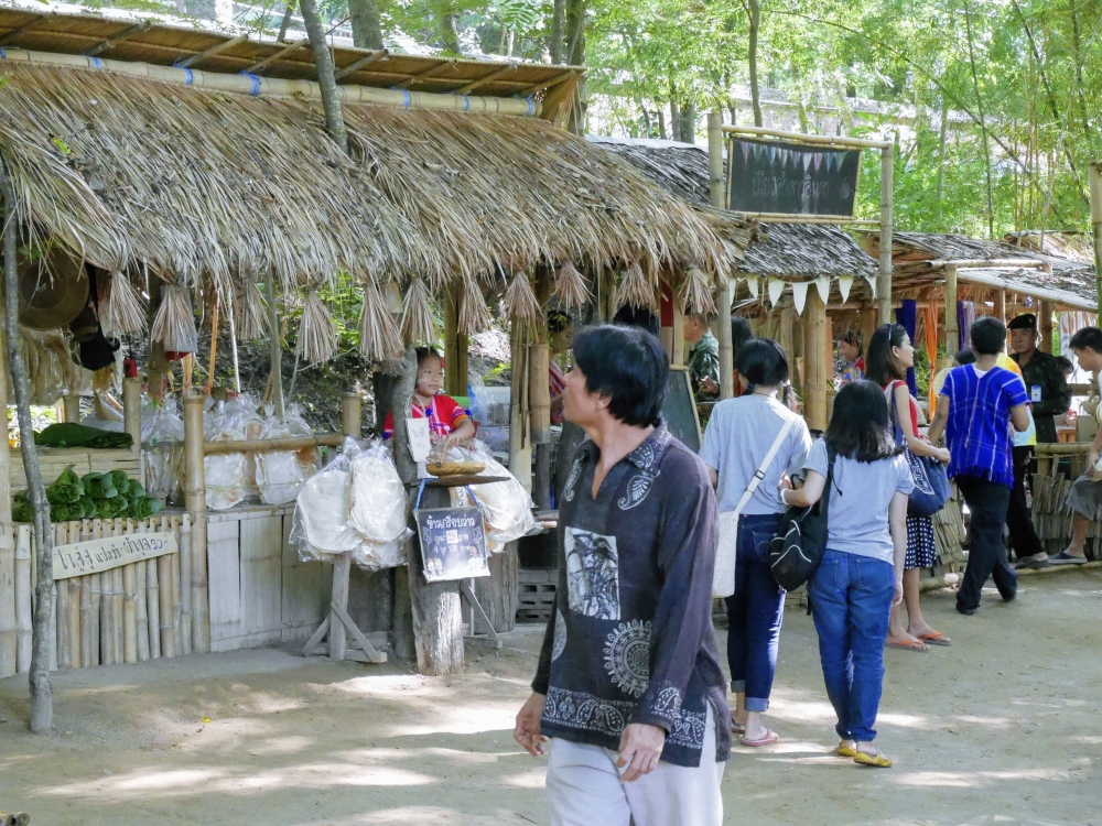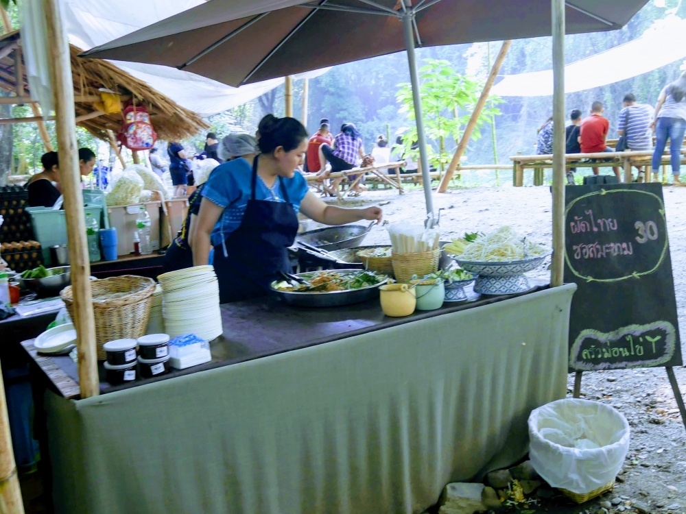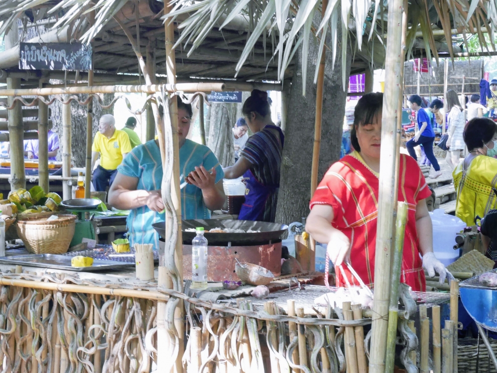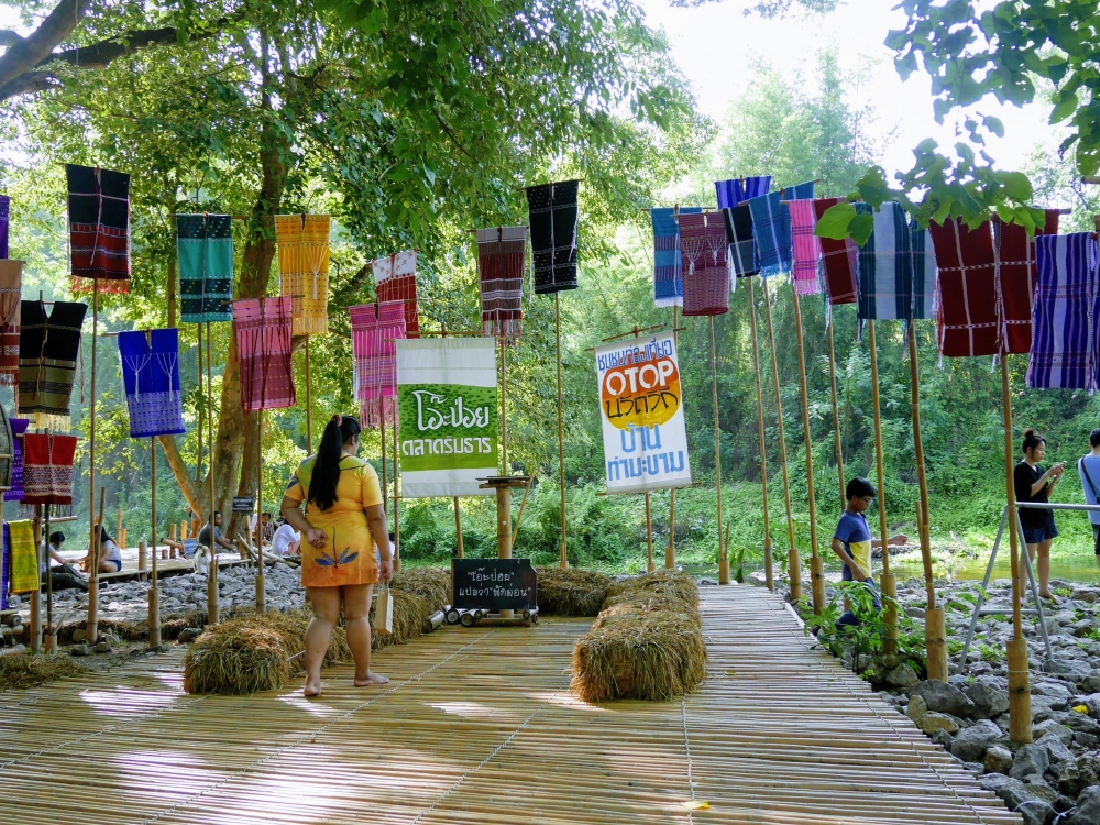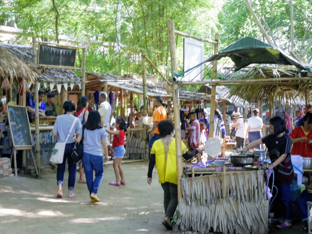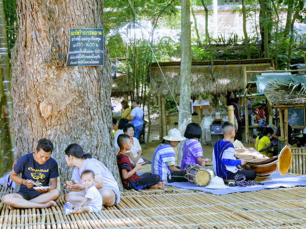 ตักบาตรเสร็จถึงเวลาตลาดเปิด ใครใคร่กินอะไรก็ไปซื้อตามใจ และมานั่งทานริมน้ำ ทางตลาดได้จัดสัดส่วนและพื้นที่ให้นั่งพักผ่อนสมกับชื่อ "โอ๊ะป่อย" ที่แปลจากภาษากะเหรี่ยงว่าพักผ่อนจริงๆ แต่เงื่อนไขมีอยู่ตรงที่บริเวณที่มีไม้ไผ่สานเป็นทางเดินหรือนั่งห้ามใส่รองเท้าเข้าไป เพราะเป็นการอนุรักษ์และเพื่อการนวดเท้าไปในตัว