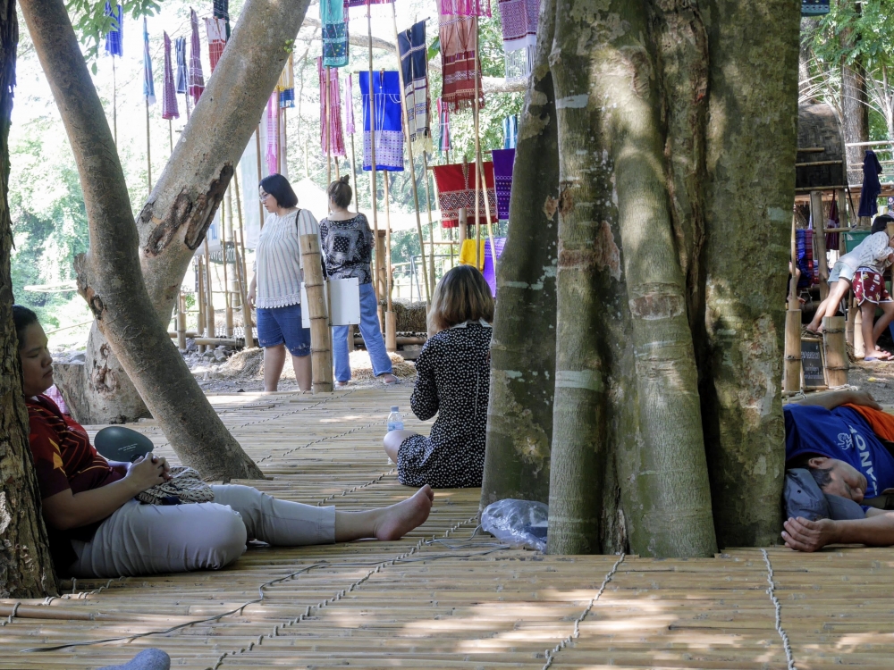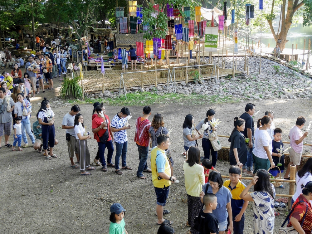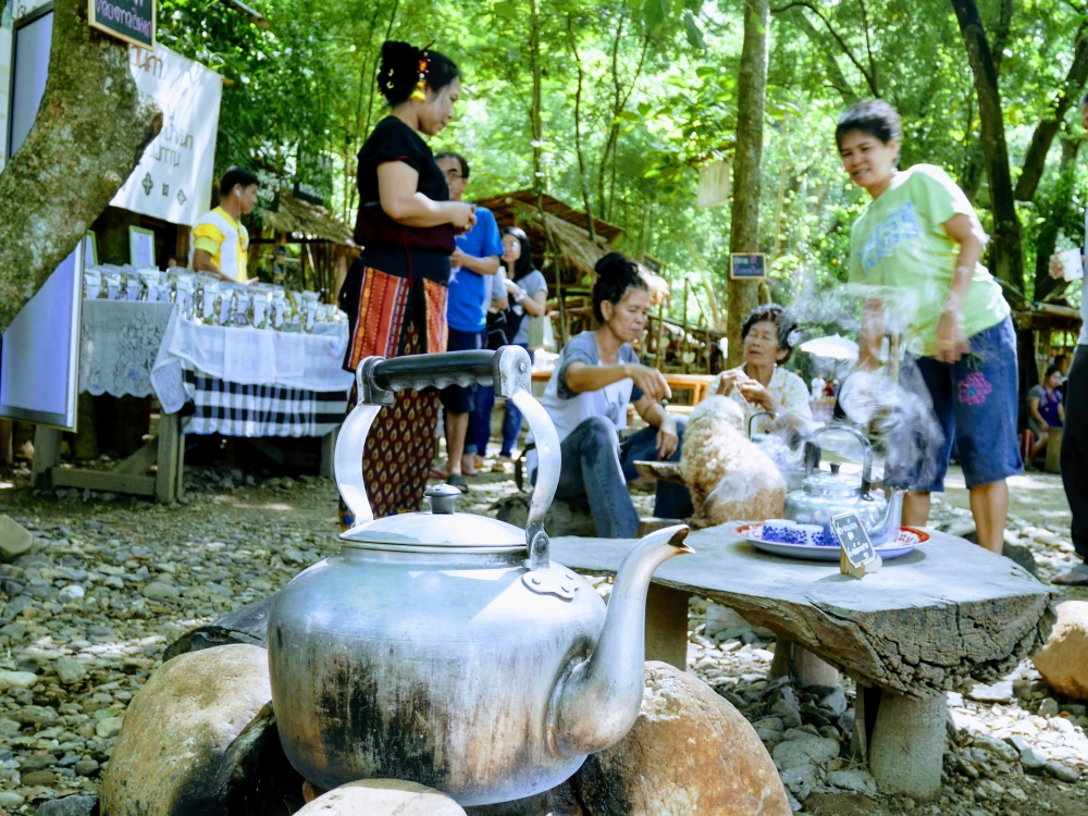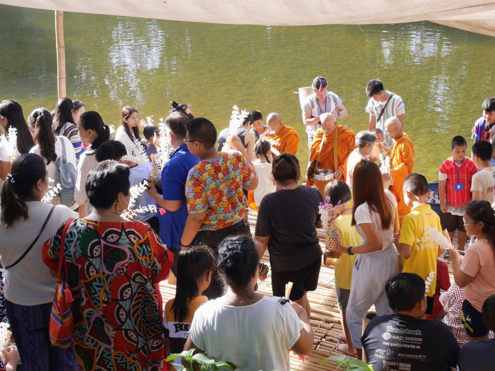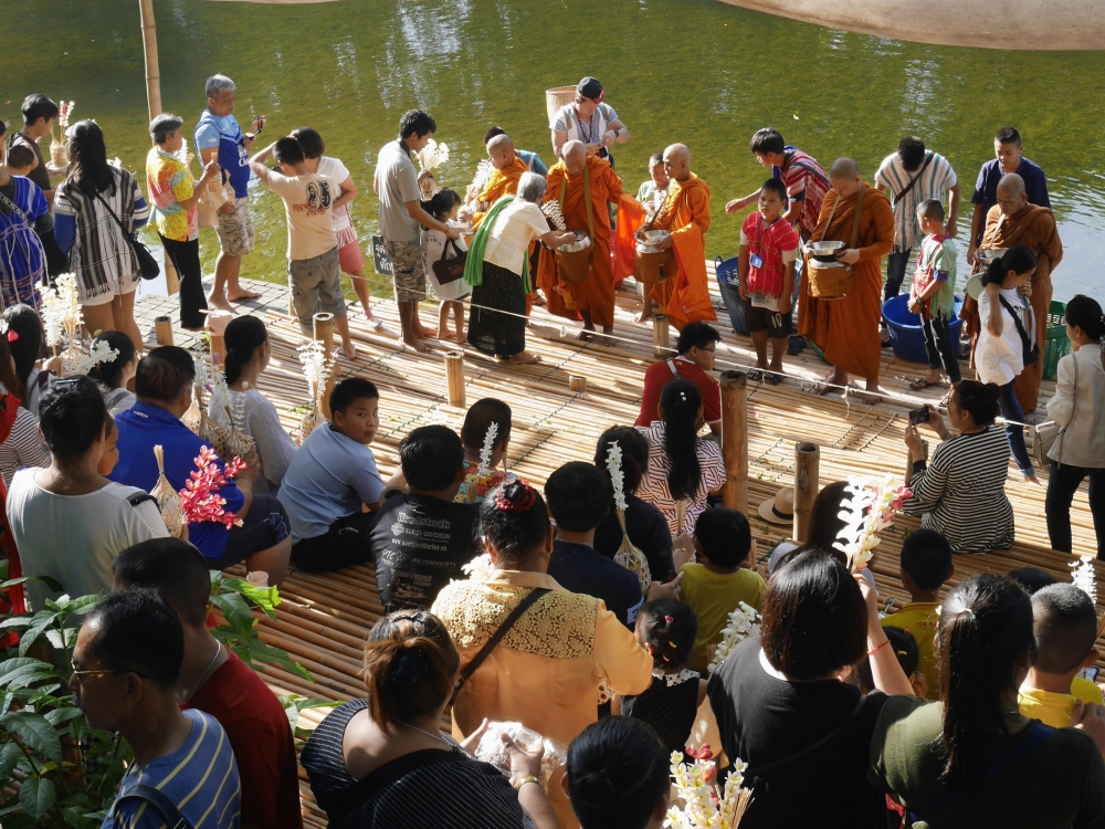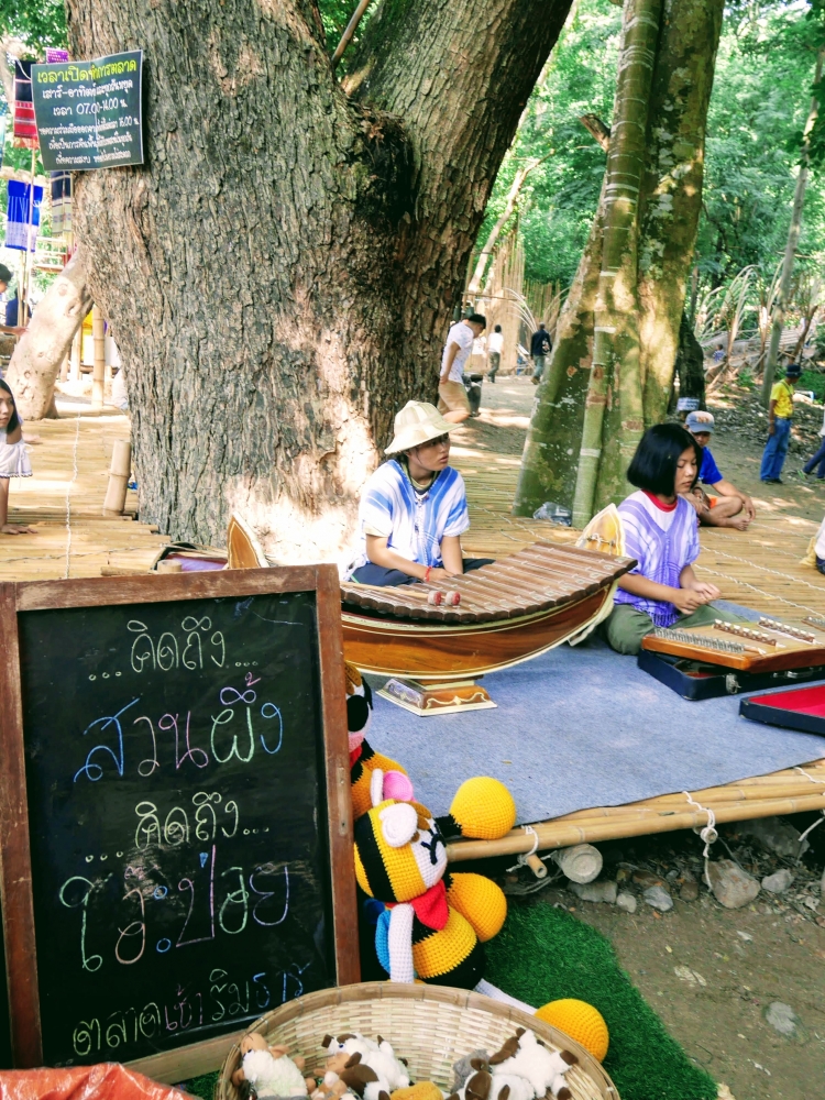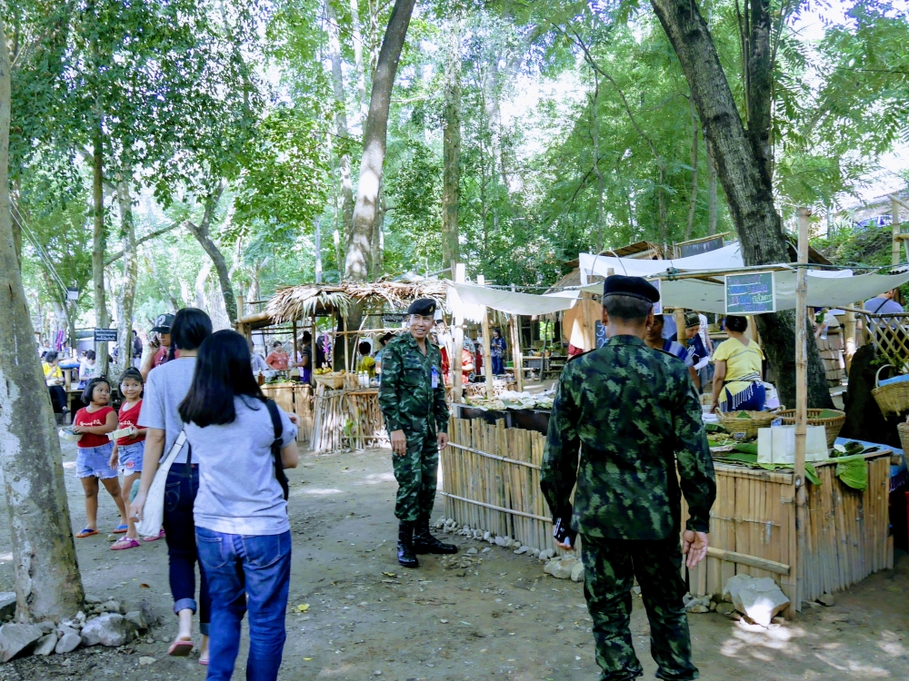 ตักบาตรเสร็จถึงเวลาตลาดเปิด ใครใคร่กินอะไรก็ไปซื้อตามใจ และมานั่งทานริมน้ำ ทางตลาดได้จัดสัดส่วนและพื้นที่ให้นั่งพักผ่อนสมกับชื่อ "โอ๊ะป่อย" ที่แปลจากภาษากะเหรี่ยงว่าพักผ่อนจริงๆ แต่เงื่อนไขมีอยู่ตรงที่บริเวณที่มีไม้ไผ่สานเป็นทางเดินหรือนั่งห้ามใส่รองเท้าเข้าไป เพราะเป็นการอนุรักษ์และเพื่อการนวดเท้าไปในตัว