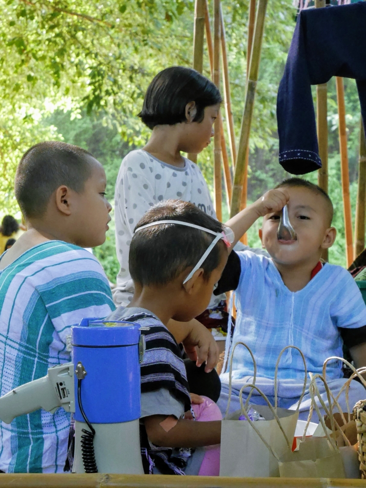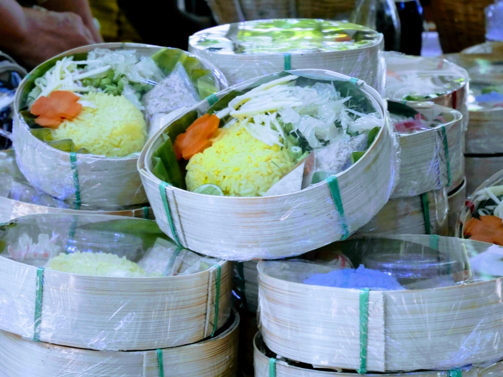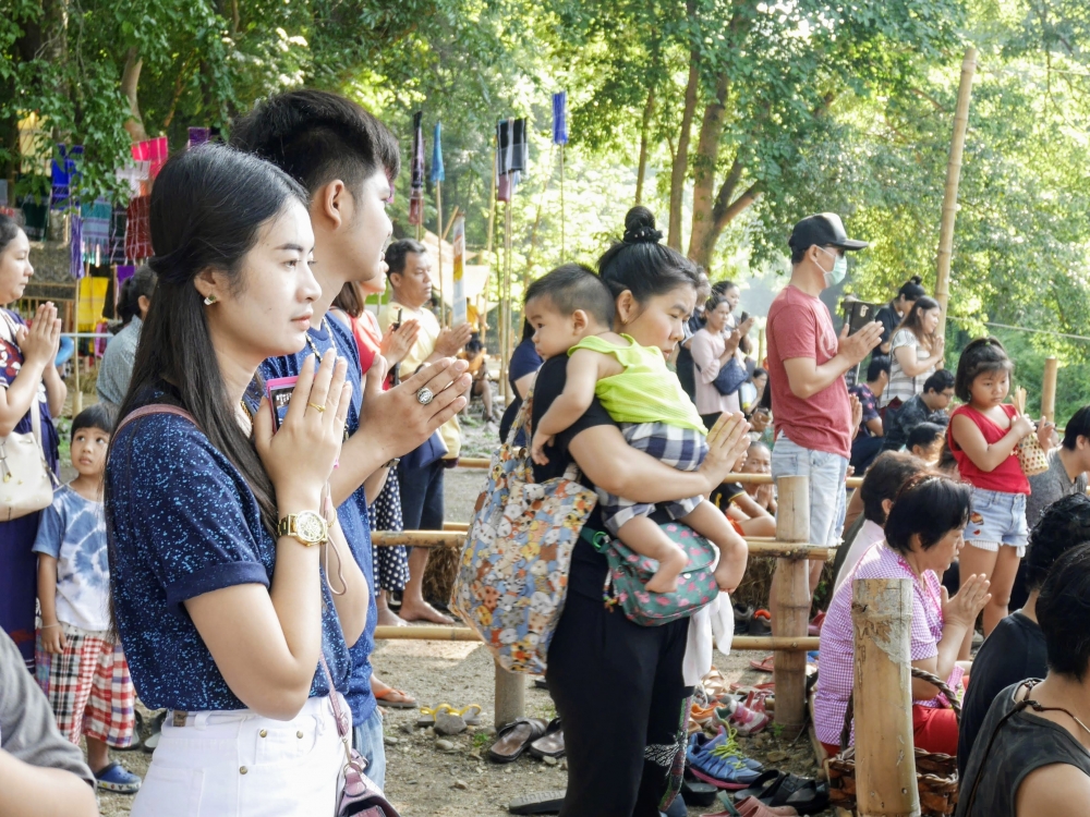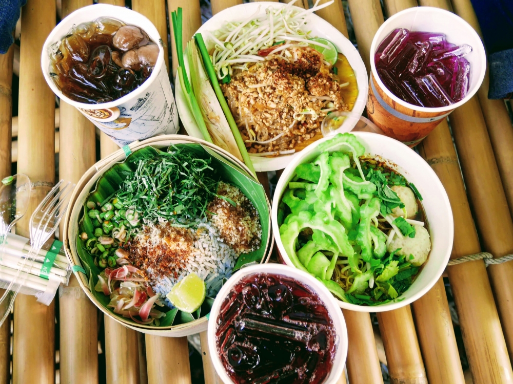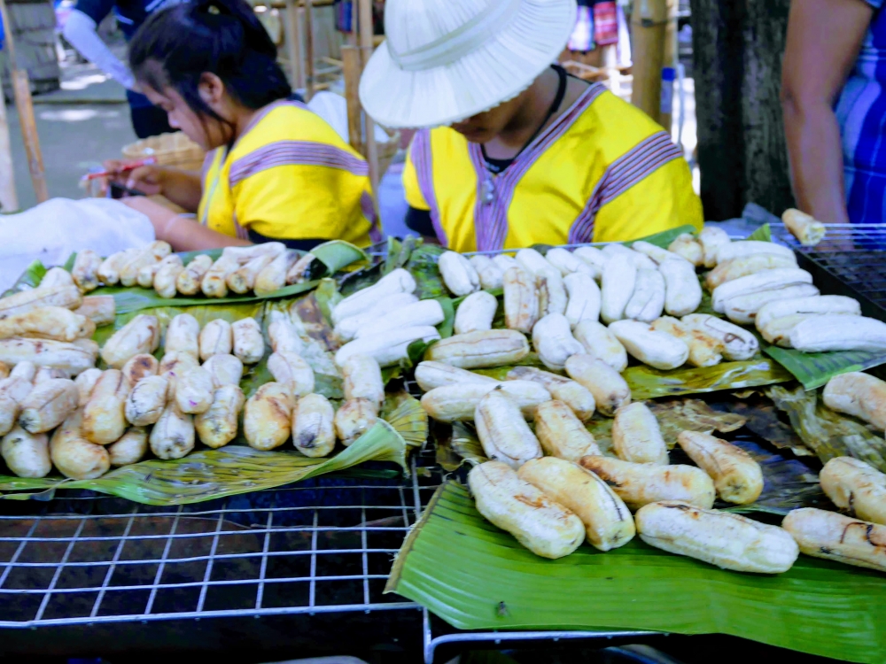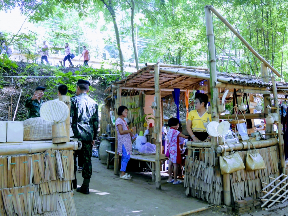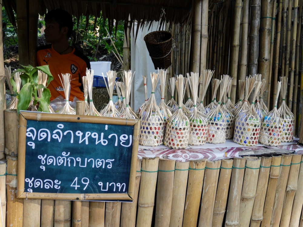 ตักบาตรเสร็จถึงเวลาตลาดเปิด ใครใคร่กินอะไรก็ไปซื้อตามใจ และมานั่งทานริมน้ำ ทางตลาดได้จัดสัดส่วนและพื้นที่ให้นั่งพักผ่อนสมกับชื่อ "โอ๊ะป่อย" ที่แปลจากภาษากะเหรี่ยงว่าพักผ่อนจริงๆ แต่เงื่อนไขมีอยู่ตรงที่บริเวณที่มีไม้ไผ่สานเป็นทางเดินหรือนั่งห้ามใส่รองเท้าเข้าไป เพราะเป็นการอนุรักษ์และเพื่อการนวดเท้าไปในตัว