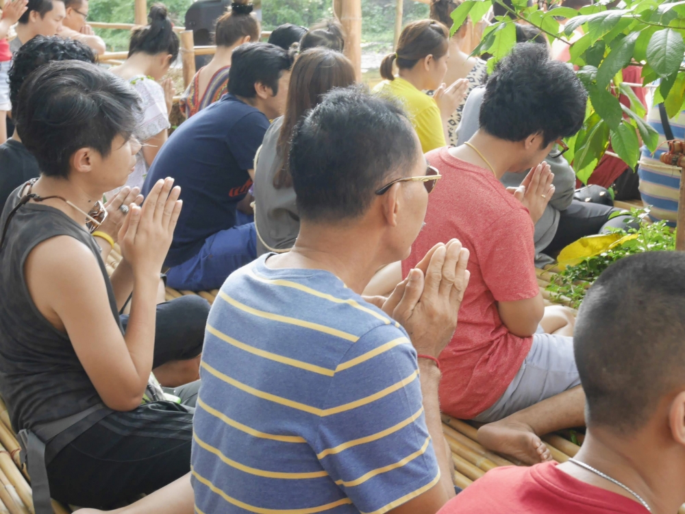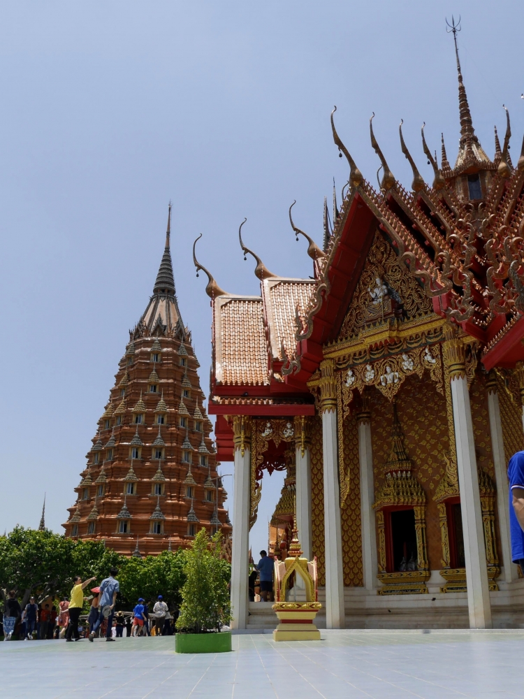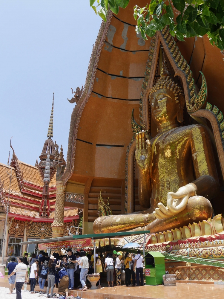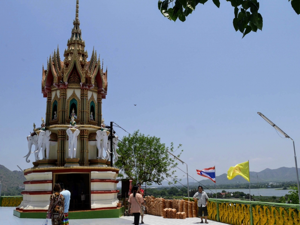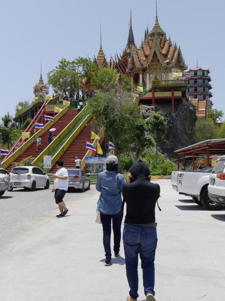 เชื่อแล้วว่า กาญจนบุรีร้อนมากๆๆๆ แค่เปิดประตูรถ แดดแรงอากาศร้อนจนแทบจะปิดประตูนอนรอในรถ แต่ด้วยแรงศรัทธาของพุทธศาสนิกชน ร้อนยังไง ก็จะบุกไปเพื่อกราบไหว้ให้ได้ จะต้องเดินขึ้นบันไดกี่ขั้น ปวดขาปวดเข่าแค่ไหนก็จะไป