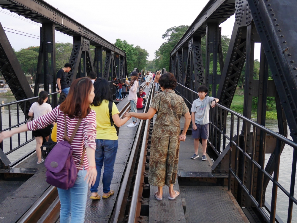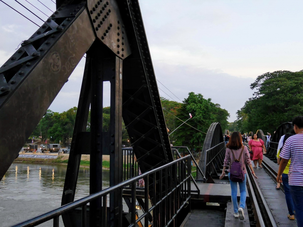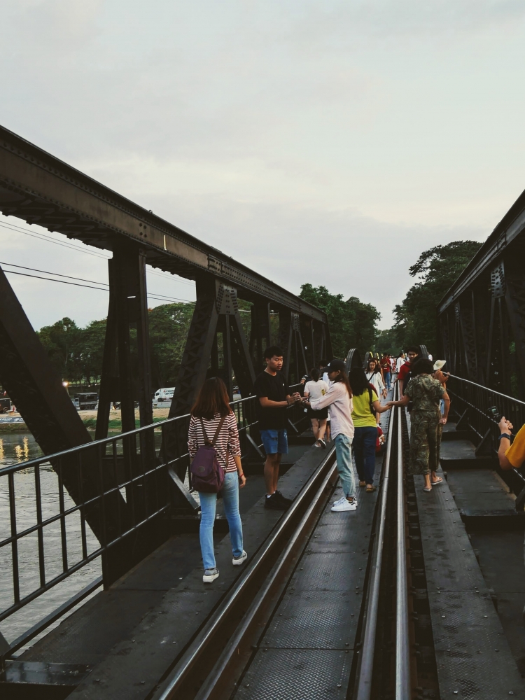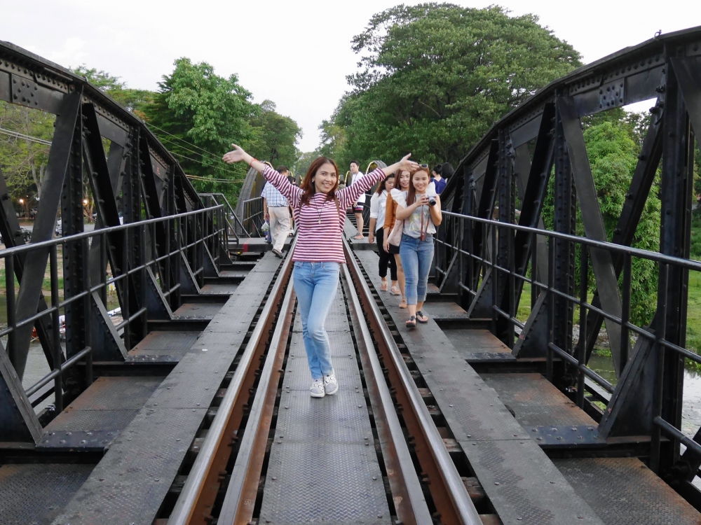 เป้าหมายต่อไปของเรา คือ สะพานข้ามแม่น้ำแคว สาวสวยซุ่มฯ เรียกร้องตั้งแต่อยู่ในรถเพราะความจริงอยากไปเส้นทางรถไฟสายมรณะ แต่มันจะมืดค่ำแล้ว เอาเป็นเส้นทางสบายๆ ไปก่อนหละกัน ^^