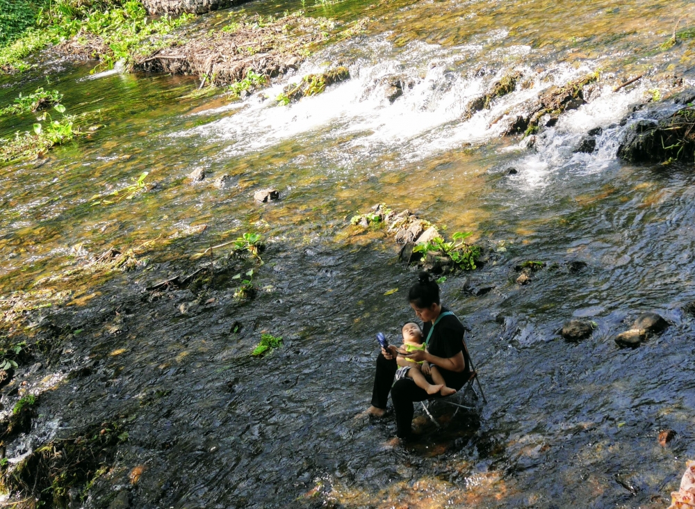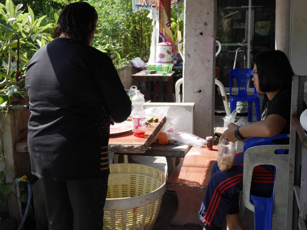 สาวคิกขุฯ : "สวัสดีคะ ติดต่อที่พักคะ ไม่ทราบมีห้องว่างไหมคะ - อ๋อ ค่ะ ราคาเท่าไรคะ  เป็นบ้านเรือนไทยใช่ไหม? พักคืนเดียวคะ 3 คนคะ อ๋อ ผู้หญิงตัวเล็กๆ นอนเตียงเดียวกันได้คะ 555 อ๋อ ตามสบายเลยหราค่ะ ได้คะ จะเข้าไปดูเดี๋ยวนี้คะ รอสักครู่นะค่ะ" สาวคิกขุฯ กำลังเจรจากับทางเจ้าของรีสอร์ทอยู่