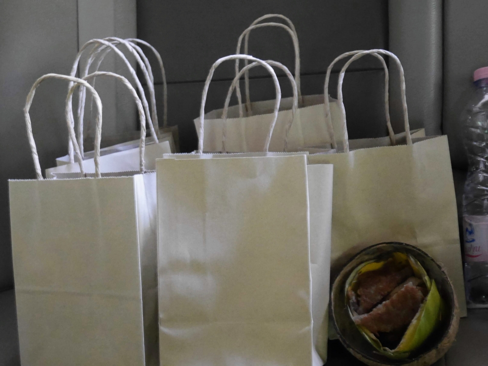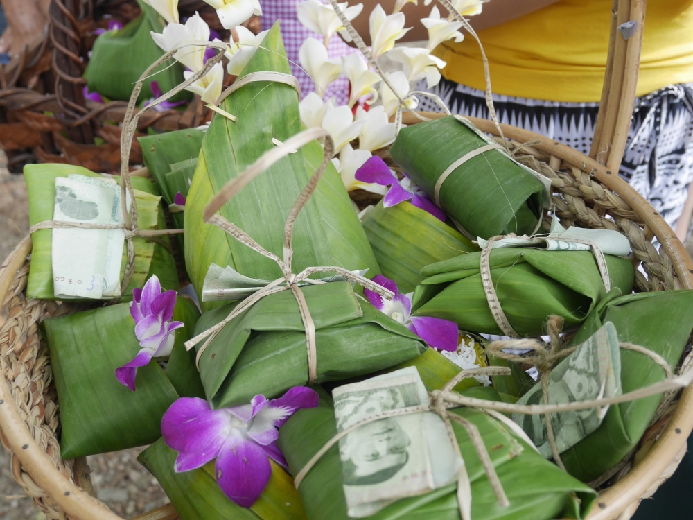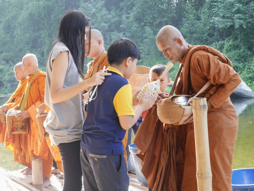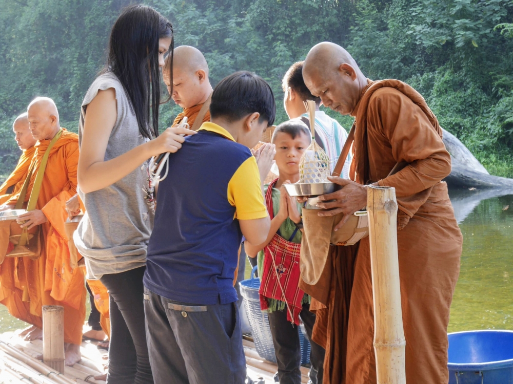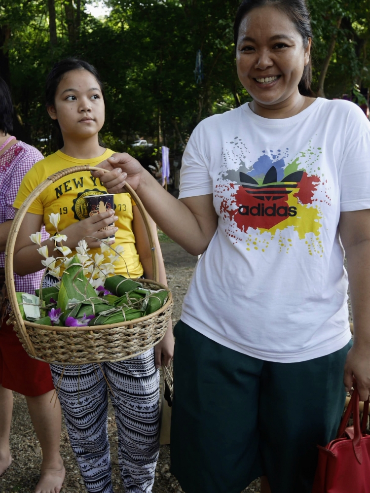 ชุดตักบาตรราคาไม่แพง 49 บาท  แถมดอกไม้ที่ขายชุดละ 20 บาท เพื่อสมทบเป็นทุนให้น้องๆ ต่อไป