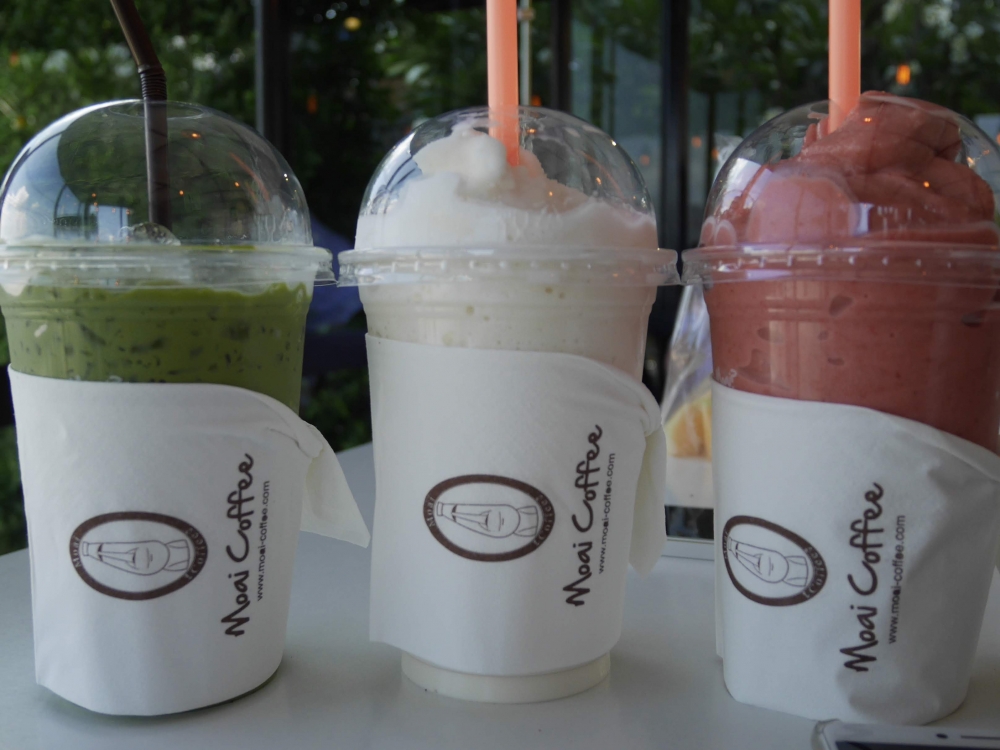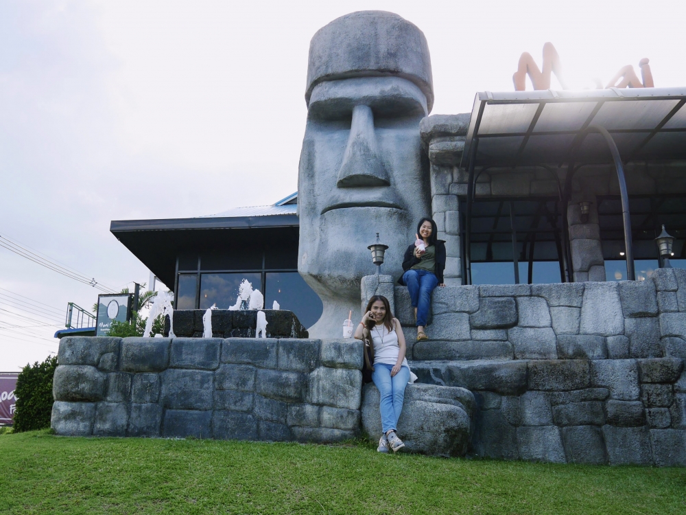 พอได้กินเมล่อนของโปรดแล้ว เดอะแก๊งฯ ตั้งหน้าหาที่พักกันต่อ แต่เราสะดุดตาร้านกาแฟริมทางที่มีหินสลักเป็นรูปหน้าคนเหมือนยุคหินฟลิ้นท์สโตนส์ ที่นี้ คือ "โมอาย คอฟฟี่" แวะสิคะ จะปล่อยผ่านได้ไง ^^