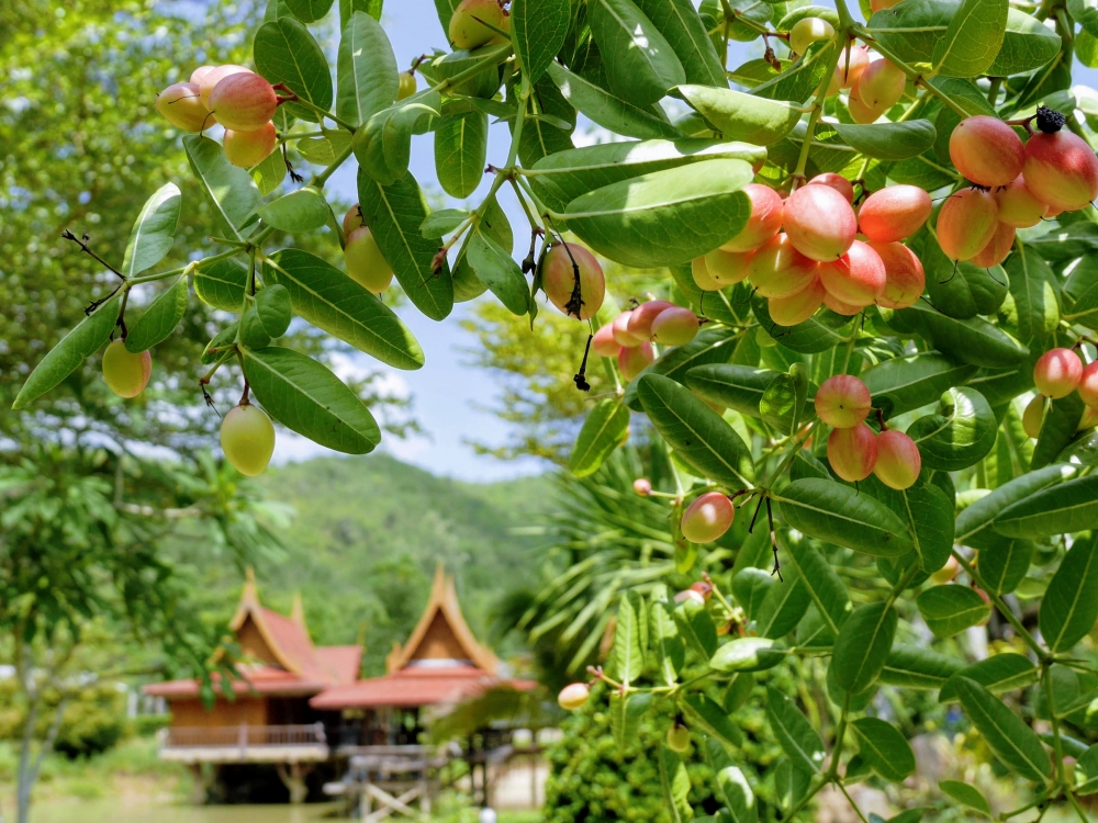 บริเวณรีสอร์ท มีพันธ์ุไม้มากมาย ทั้งไม้ผล และไม้ประดับ มะม่วงออกเต็มต้น อาจารย์ก็ใจดี๊ ใจดี บอกเก็บกินได้เลยคะ  แหม+++เสียดาย รู้งี้เอากระบะมาขนกลับบ้านไปแล้ว 5555
