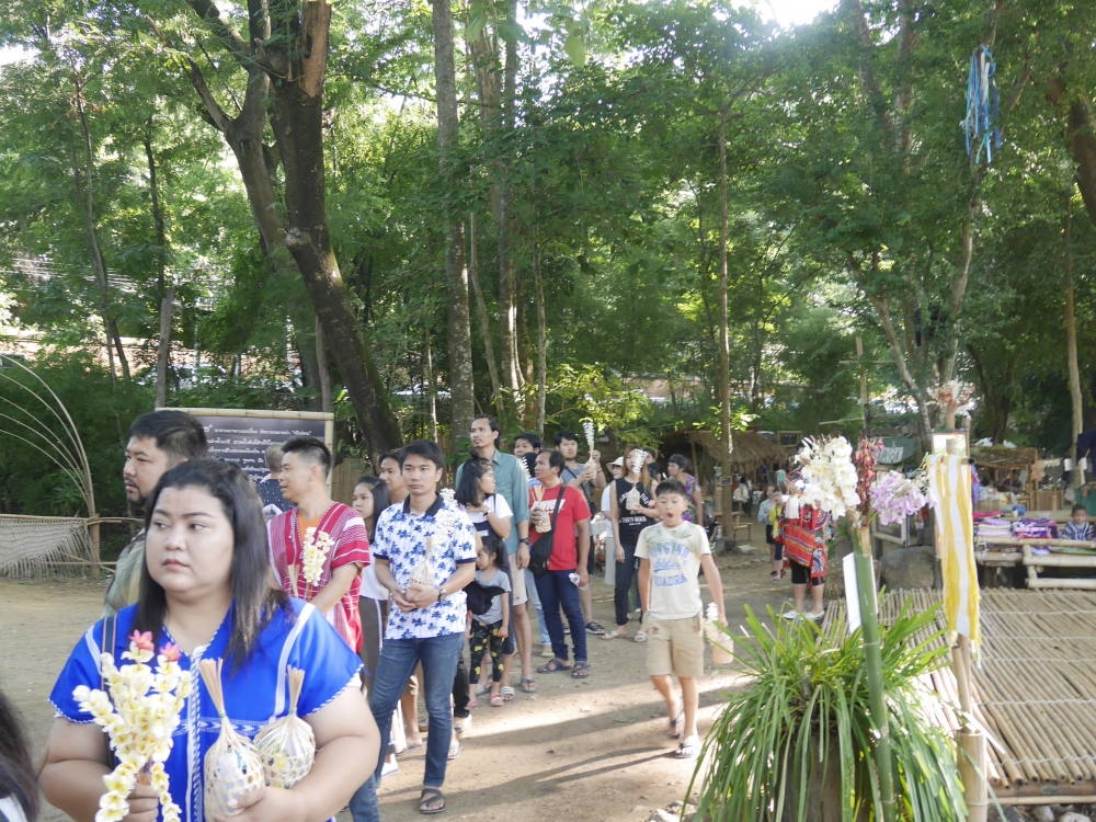 ในระหว่างที่ตักบาตร ผู้ใหญ่บ้านจะเป็นคนเป่าเขาควายเป็นจังหวะ ๆ เข้าถึงอารมณ์และรับรู้ได้ถึงบรรยากาศความศักดิ์สิทธิ์ในพิธีกรรมนี้จริงๆ ช๊อบชอบ ^^