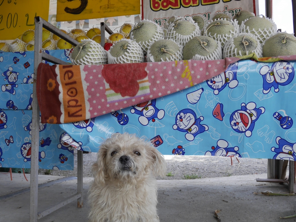 น้องหมานั่งเฝ้าร้าน คงกลัวว่าสาวคิกขุฯ จะมากวนใจอะไร แต่นางน่ารักมากไม่เห่าสักคำ แถมทำหน้าตาน่ารักใส่อีก เกรงใจพี่เจ้าของร้านนะ ไม่งั้นจับยัดมาท้ายรถพากลับบ้านด้วยแล้ว 555