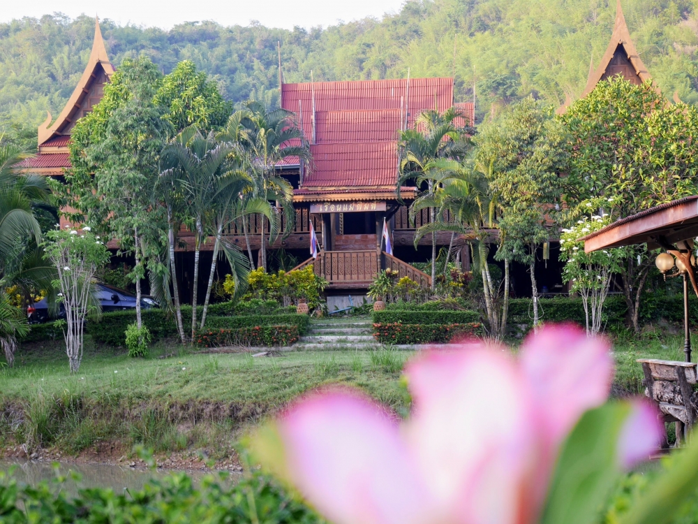 เราไปจับจองห้องที่เรือนแม่พิมพ์ เป็นเรือนไทยหลังใหญ่ มีห้องเล็กๆ อยู่บนเรือน 6 ห้อง แต่วันนั้นไม่มีแขกห้องอื่นพัก เดอะแก๊งฯ จึงถือครองเรือนใหญ่ไปโดยปริยาย ไม่มีใครมาแย่ง 5555