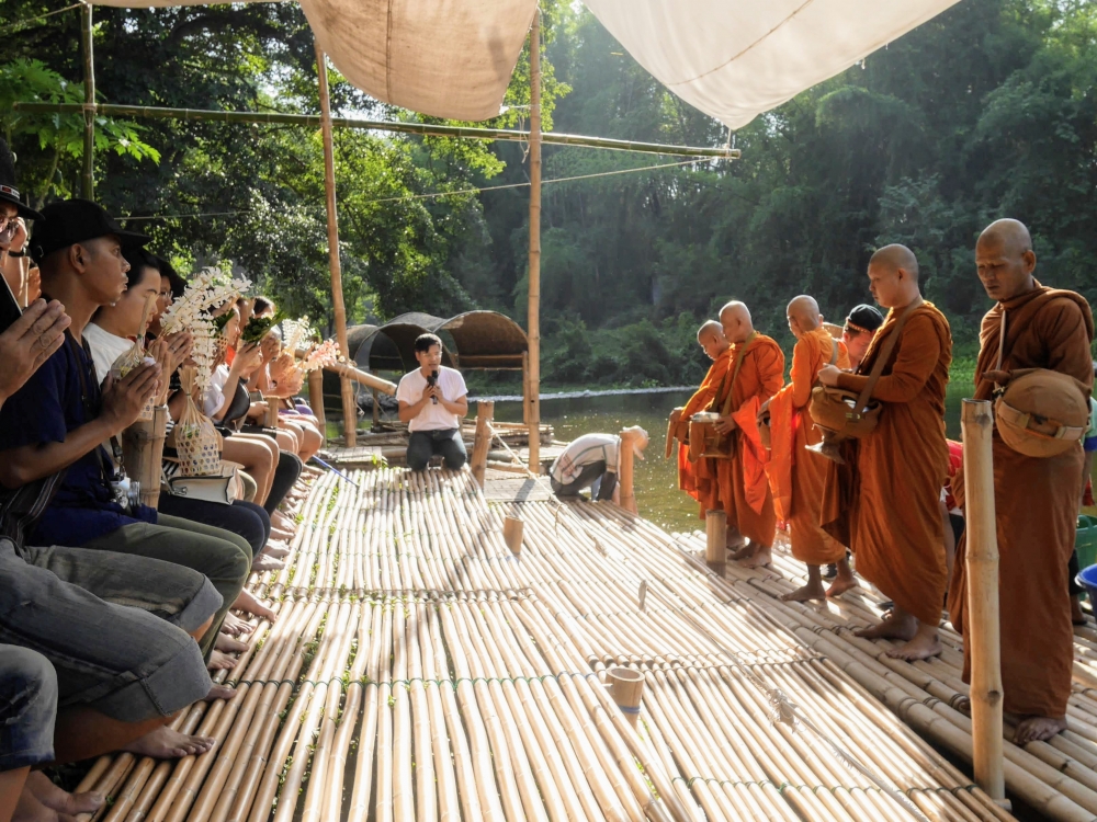 ตื่นเต้นตอนจังหวะที่พระมากับแพ มันเท่ห์มาก หุหุหุ ฉากหลังสวยด้วย พระท่านคงร้อนเพราะต้องใช้เวลายืนบนแพสักพัก กว่าที่แพจะมาถึงก็น่าจะร้อนใช้ได้อยู่
