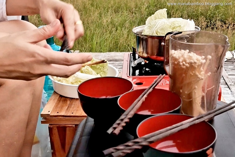นั้นหมายถึงเหลือเวลากางไม่มากเพราะต้องไปซื้อของสดเพื่อทำชาบูกัน ว่าละก็กางเต็นท์อย่างด่วน